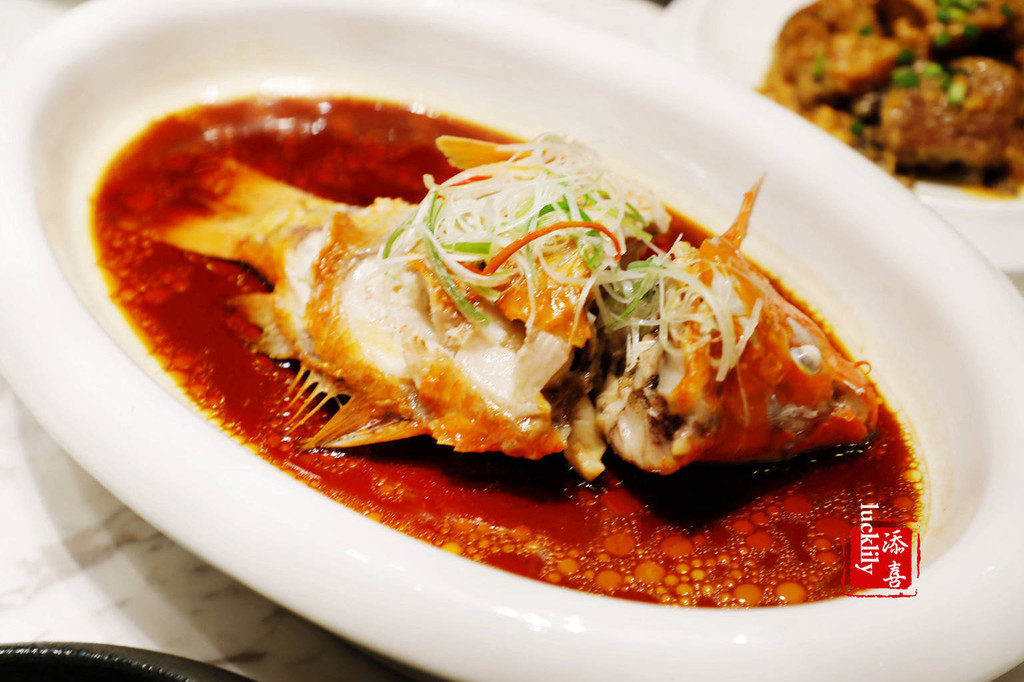 水上餐厅是以江西本地菜系为主的特色主题餐厅,婺源当地特色名菜广式蒸红鲤鱼、招牌小米粉蒸肉、菜心炒粽是我第一次品尝到;婺源的红鲤鱼据史料记载 ,早期生活在明朝神宗皇帝的御花园内,身份极高!因其头小,尾短,背高,体宽,背部隆起,腹部肥大,形似荷包的婺源荷包红鲤,烹制后,汤鲜味美,肥而不腻,香而无腥,可并不是我们其他地区的红鲤鱼可以替代的;以米入菜是江西菜的一大特色,所以这道小米粉蒸肉自然也就成了水上餐厅的招牌菜,其口感糯而清香,有肥有瘦,米粉油润,五香味浓郁,很是可口;另一道菜心炒粽也有以米入菜的异曲同工之妙,看似普通,结果我们每个人吃了都觉得此菜上佳!