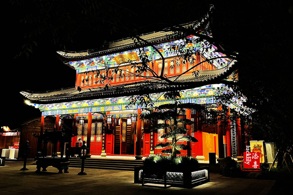 小长假景区有集五福的活动,集齐五福后要赶在上晚上8:00前到五显堂抽奖,所以就赶在8:00前先到了五显堂许愿抽奖,五显堂是婺源地方民俗五显财神文化展示场所,两层木结构阁楼建筑, 一层为五显财神供奉区和祈福区,供奉着婺源当地信奉的五显财神。每逢节庆,这里会举办五显财神走入人间、祈福等活动。二 层为祈福、抄经空间,可在此休憩、抄经、写福卡。另外还有许愿池、许愿墙区域,可以将写好的福愿挂在上方。