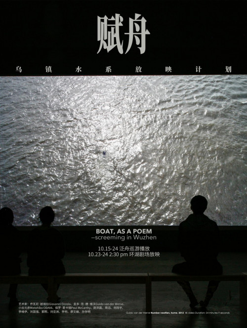 “赋舟——乌镇水系放映”,将十五艘装备有播放设备的乌篷船随机投入运营的船队当中,乘船者可以来到乌镇西栅景区,坐上游船,在偶然的、不经意的、无预设的情况下遭遇当代艺术发生场景。