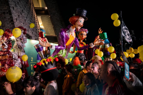 第八届乌镇戏剧节4000多名工作人员,500余位剧团人员,来自全国18组78位竞演青年,古镇嘉年华130个节目的全体演员700余人以及全国近300家媒体在乌镇集结。10月15日17时30分,古镇嘉年华的巡游水陆同时启程至乌镇大剧院,完成长达一小时的预热。 19时的乌镇大剧院内,四位发起人陈向宏、黄磊、赖声川、孟京辉一同敲响开幕大锣,由孟京辉导演、梅婷、张弌铖领衔主演开幕大戏《红与黑》,正式揭开第八届乌镇戏剧节的面纱,感受戏剧生命之繁茂,戏剧力量之葱郁。