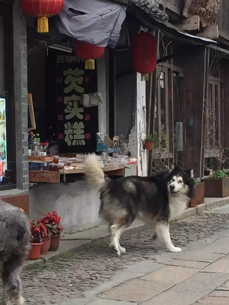 倪宅对面的一条街有了两条大狗狗,那只古牧的名字好像叫王子,阿拉斯加的名字叫什么就不清楚了。