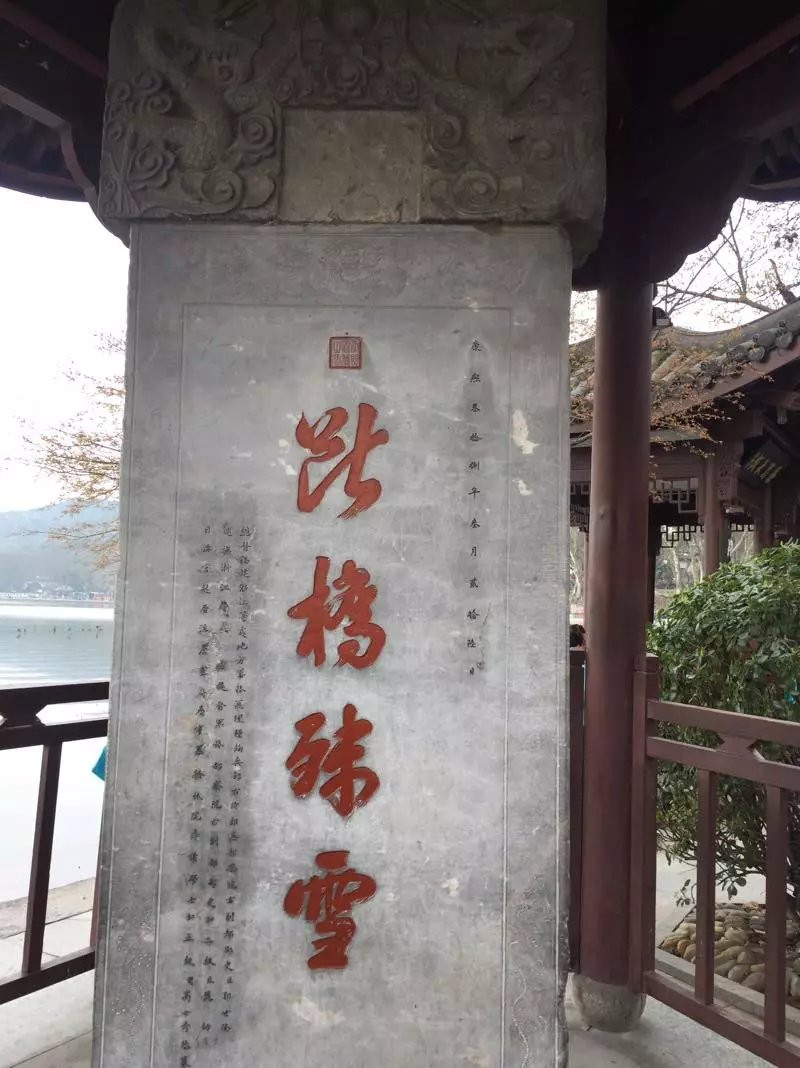 今天一直睡到自然醒,中午出去杭二中旁边买了两套烧饼夹油条和一袋豆奶带回酒店,这个烧饼并不是北方吃的烧饼,而是葱油饼,不过真的很好吃的。昨天在西湖小号体力有点多,再加上外面有点下小雨,妈咪就在酒店休息了,我一个人独自乘公交车前往西湖游览前一天没有走到的景点,在苏堤站下车,首先进入花港观鱼溜了一圈,出来徒步苏堤、白堤,游览平湖秋月,最后走到断桥,至此围绕西湖一圈的景点全部参观完毕。从断桥出来坐16路公交前往浙大玉泉校区,晚上回到酒店带上妈妈坐车去有名的吴山夜市逛一逛。