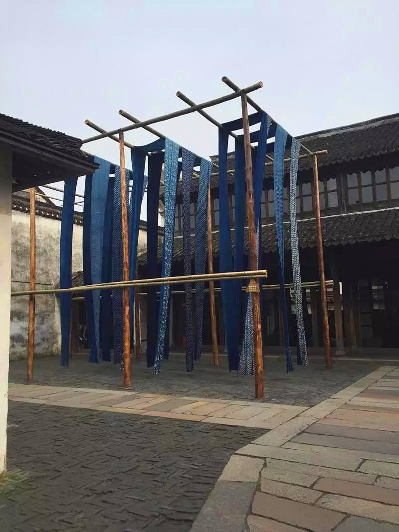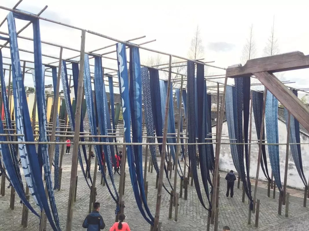 东栅中最爱的还是宏源泰染坊,蓝色印花布映入眼帘,微风习习印花布随风飘扬。