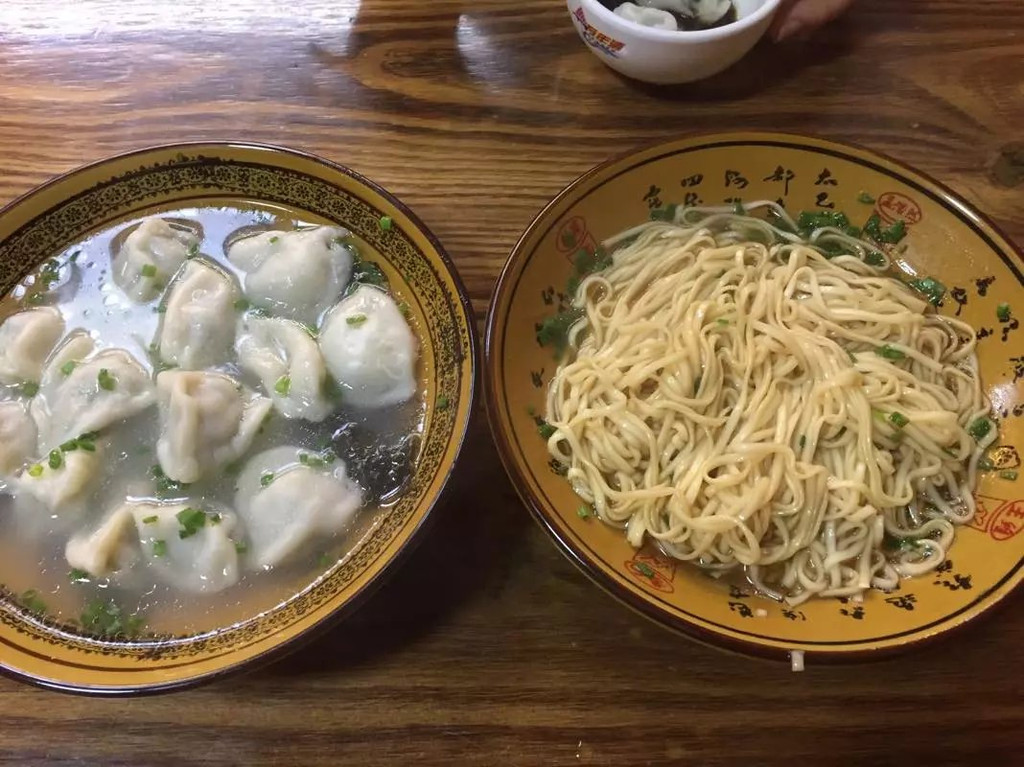 出了景区,往前走,第一个岔路口右转找到一家特色小店,点了一碗阳春面和荠菜鲜肉饺子一共25元,阳春面很好吃哦。