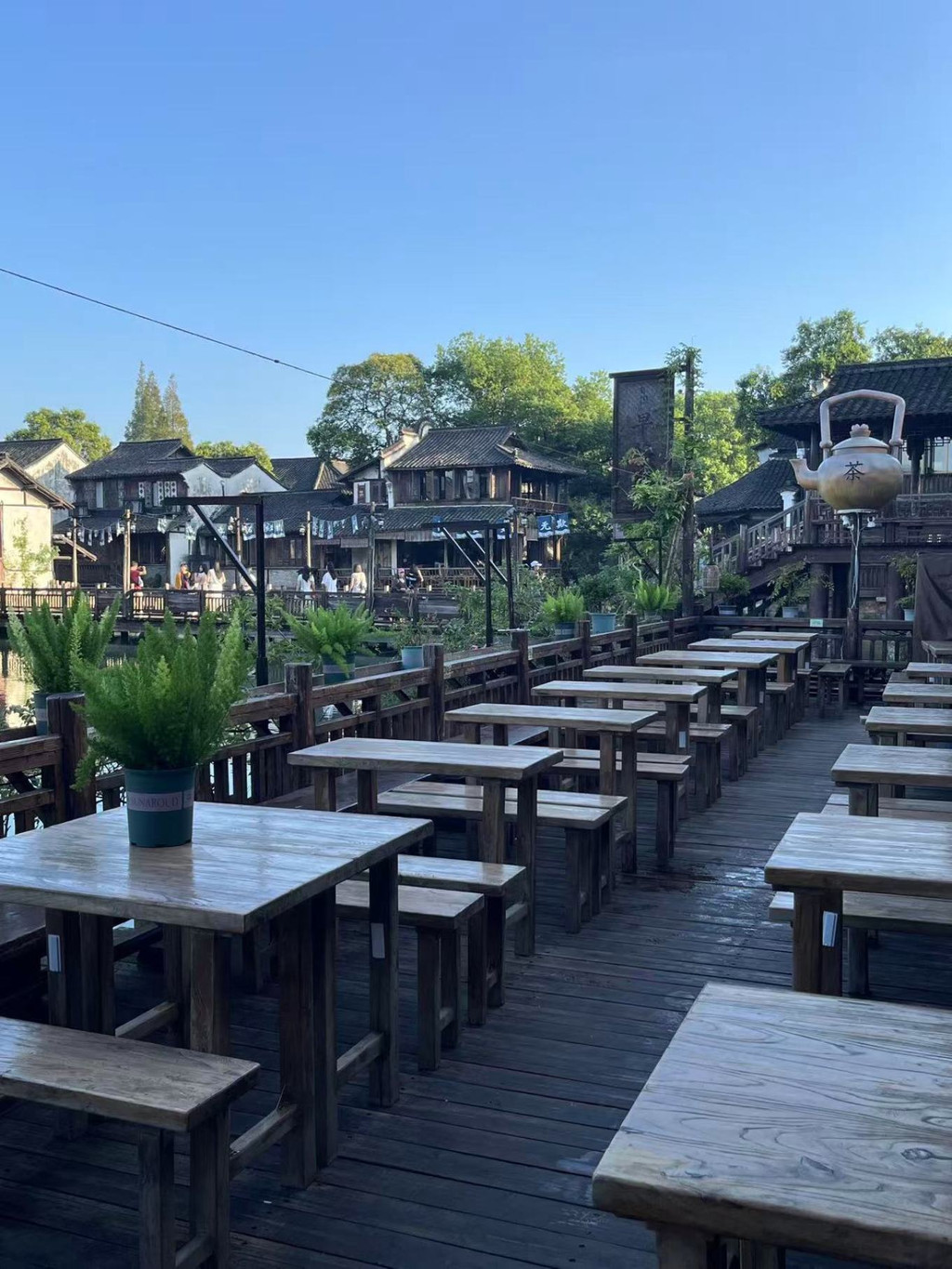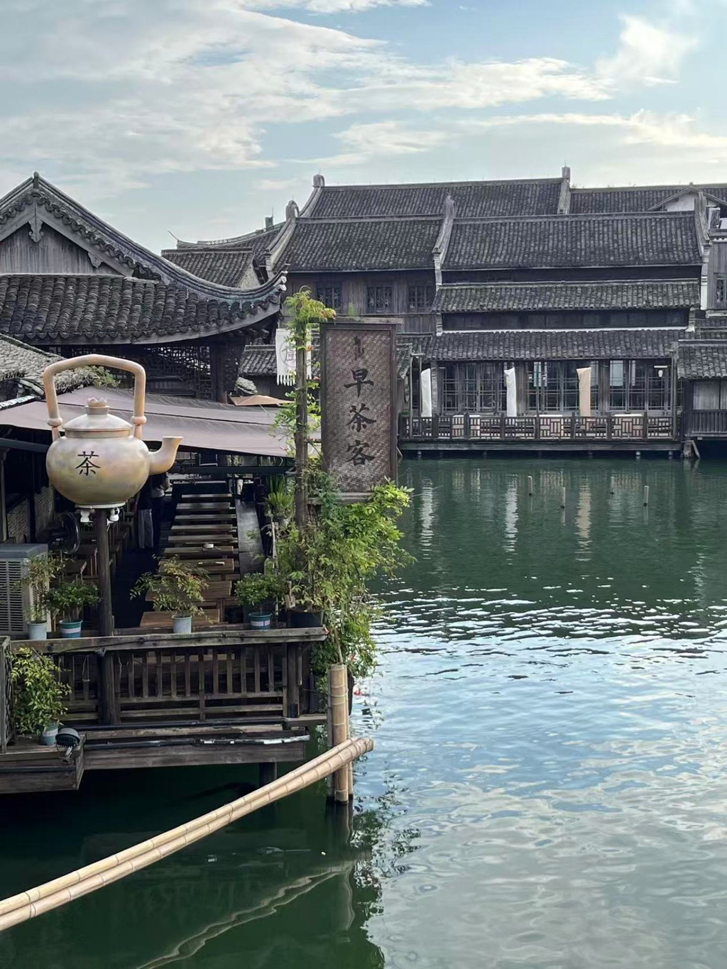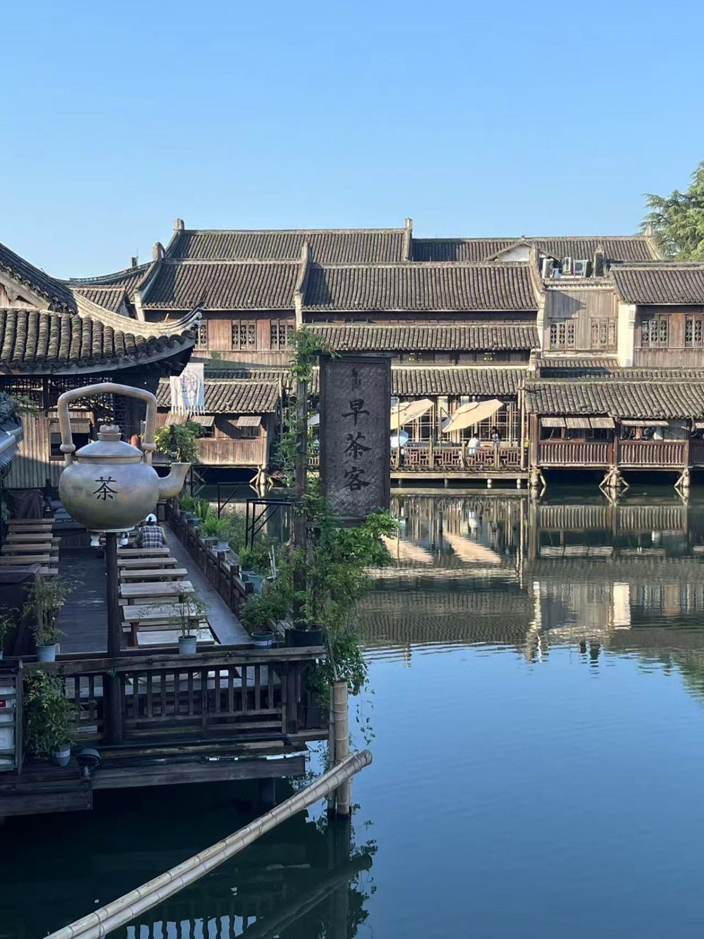 第二天(9月15日):Goodmorning!平时6点起床的宝宝今天反常了,迟迟不醒。因预约了水上集市的早茶客,我先出发,去选个临河的座位,宝宝他们可以慢慢过来。乌镇早茶客,夏令(5~9月)7:00--9:00;冬令(10~4月)7:30--9:30,是西栅景区独有的特色早餐体验。