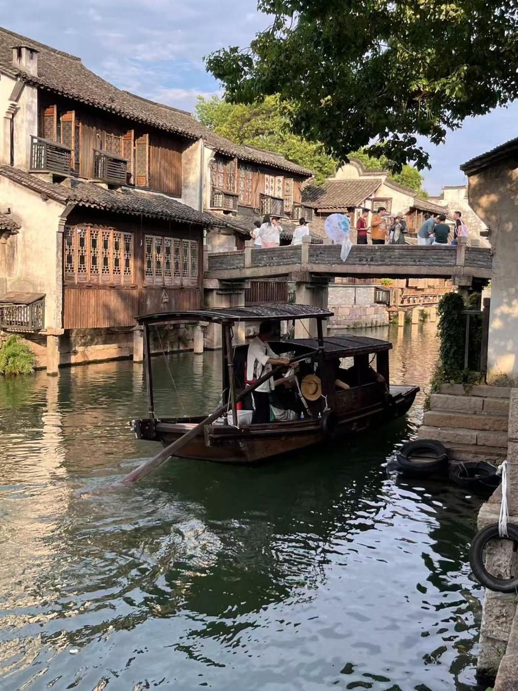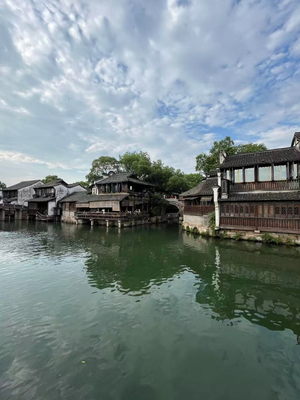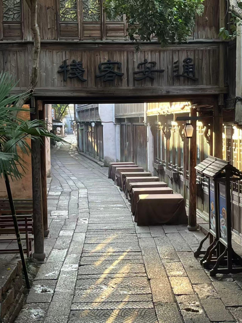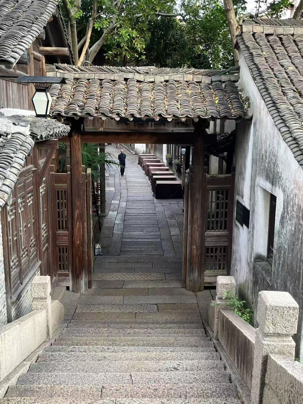 刷脸进入西栅景区后,由景区内的摆渡车把我们送到通安客栈停靠点,穿过叙昌酱园,走过古老的石桥,便是通安客栈。客栈全是临河而建的明清建筑,“推窗见水、枕河而眠”,我们住进了江南的诗意里。预订的套房分上下两层,房间内的设计融入古朴与现代,每层都有1间带卫生间的大床房。推开窗便置身于江南水乡水墨画中,Sonice!