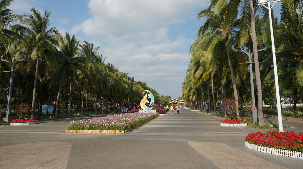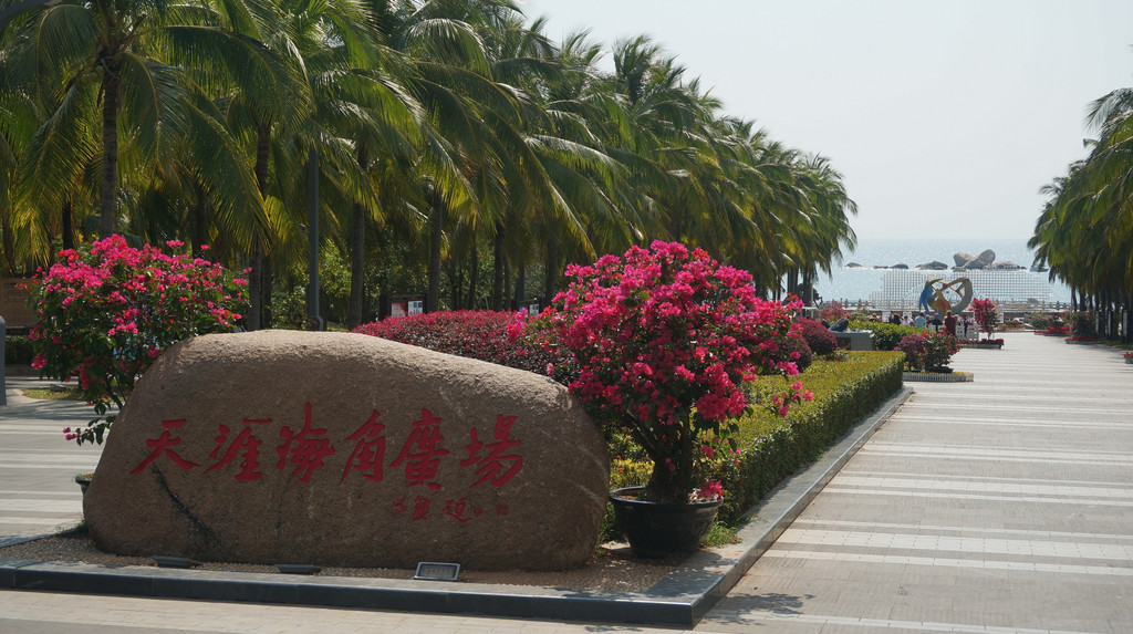 进入景区大门,就来到“天涯海角广场”。这里椰树成荫、鲜花怒放,是情侣们拍婚照的好地方。