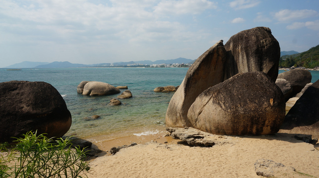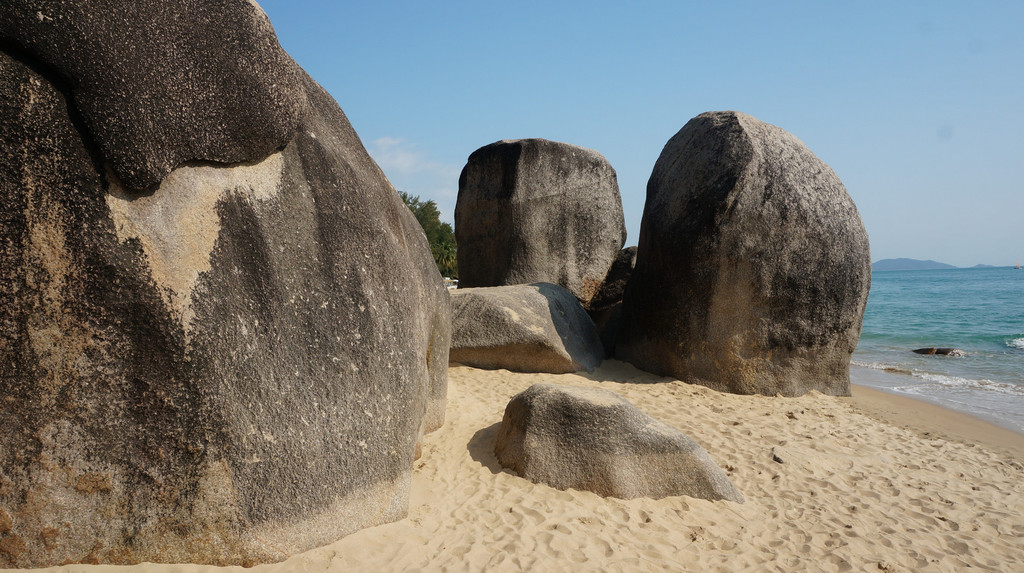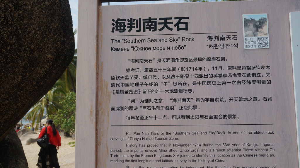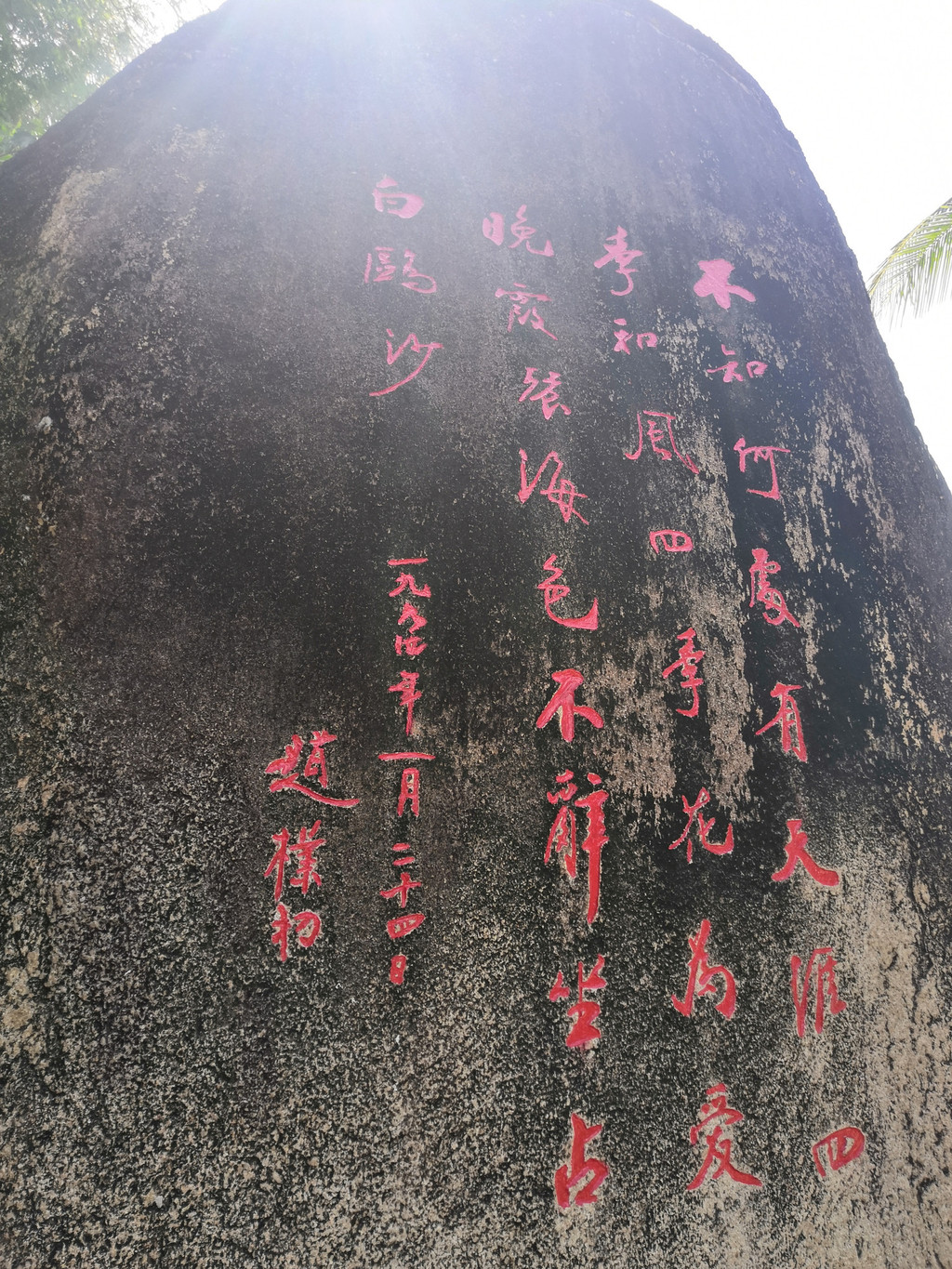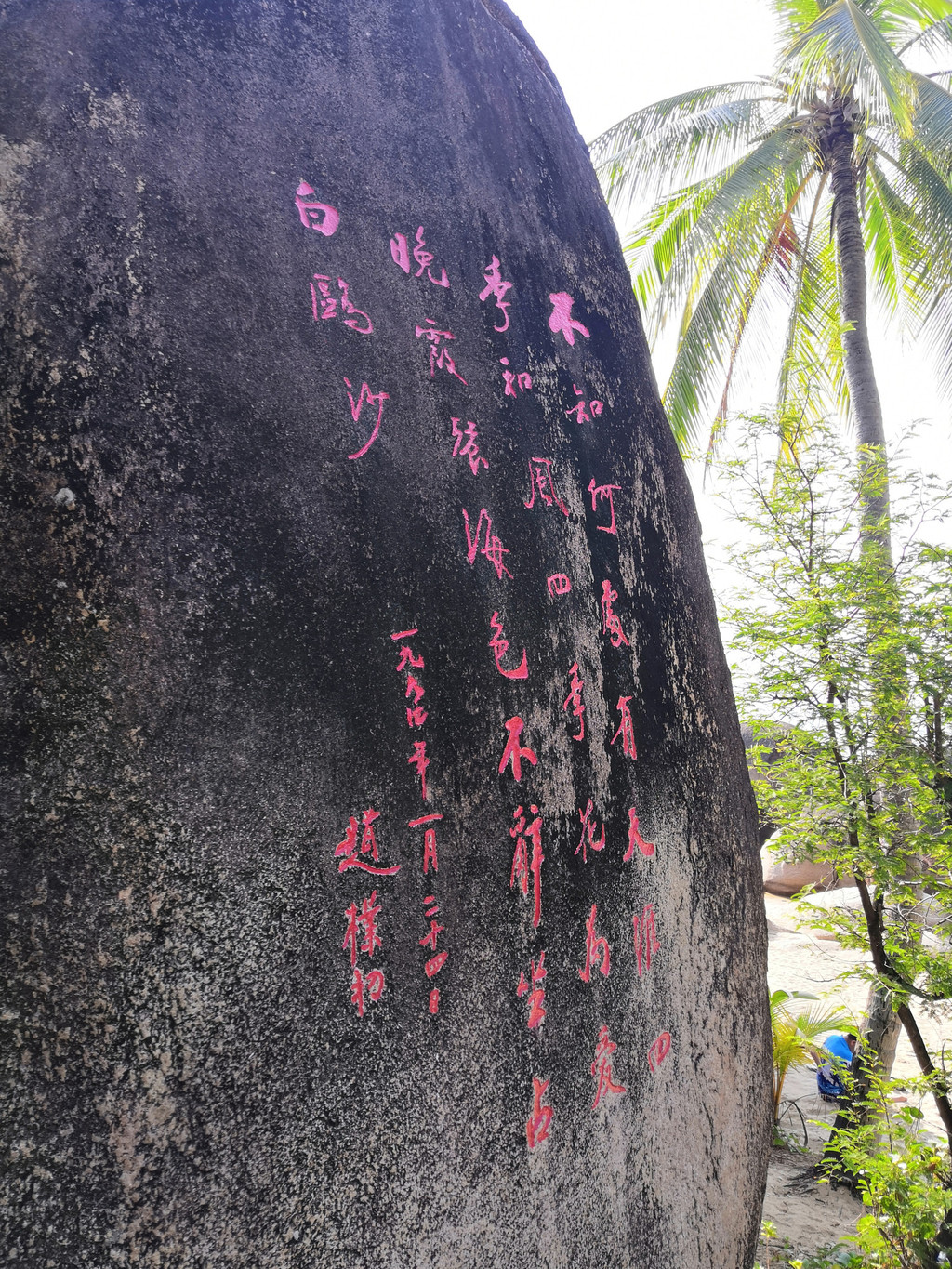 景区除了“天涯石”和“海角石”,其他有名的石刻还有“南天一柱”和“日月石”,“南天一柱”象征财富,日月石象征着爱情。