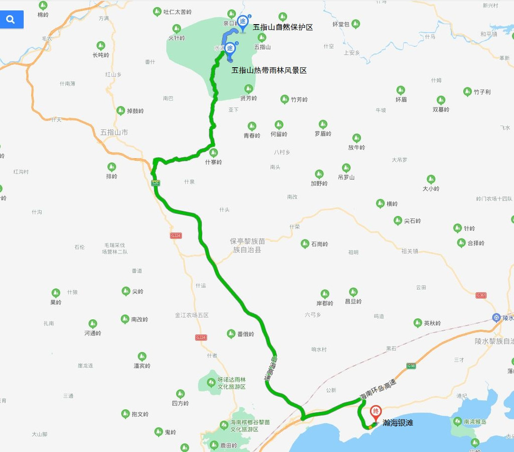 瀚海银滩 → 五指山热带雨林风景区 → 五指山国家级自然保护区 → 瀚海银滩