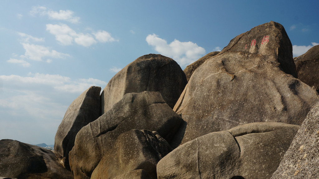 石景“玉兰含苞”本是一块椭圆形的花岗石,在漫长的海蚀风化过程中,依自身重力分裂成几瓣,形成了含苞欲放的玉兰花似的奇特造型,堪称大自然鬼斧神工的杰作。