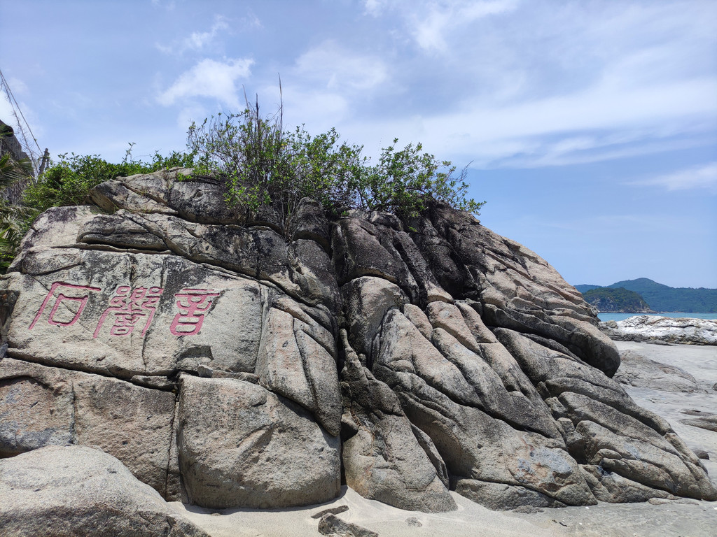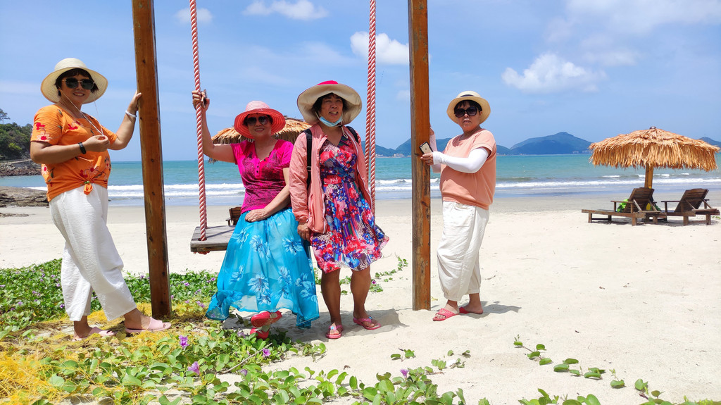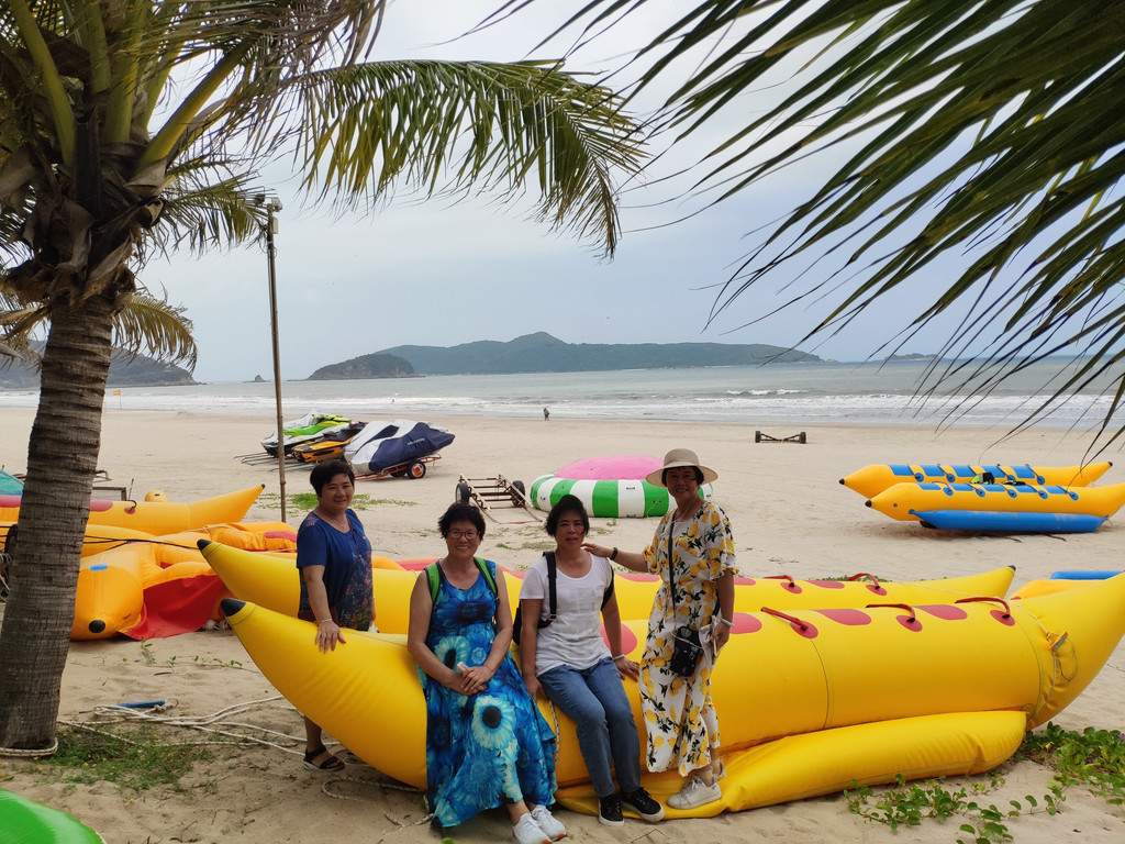 我们入住位于海边的下川岛南澳湾村的海景别墅,放下行囊,大家迫不及待地奔向了海滩。由于是疫情期间,景区游客不多,我们好像是在私家海滩游玩。海滩的主要景点有:浴女乘龙、龙女洞、音响石等