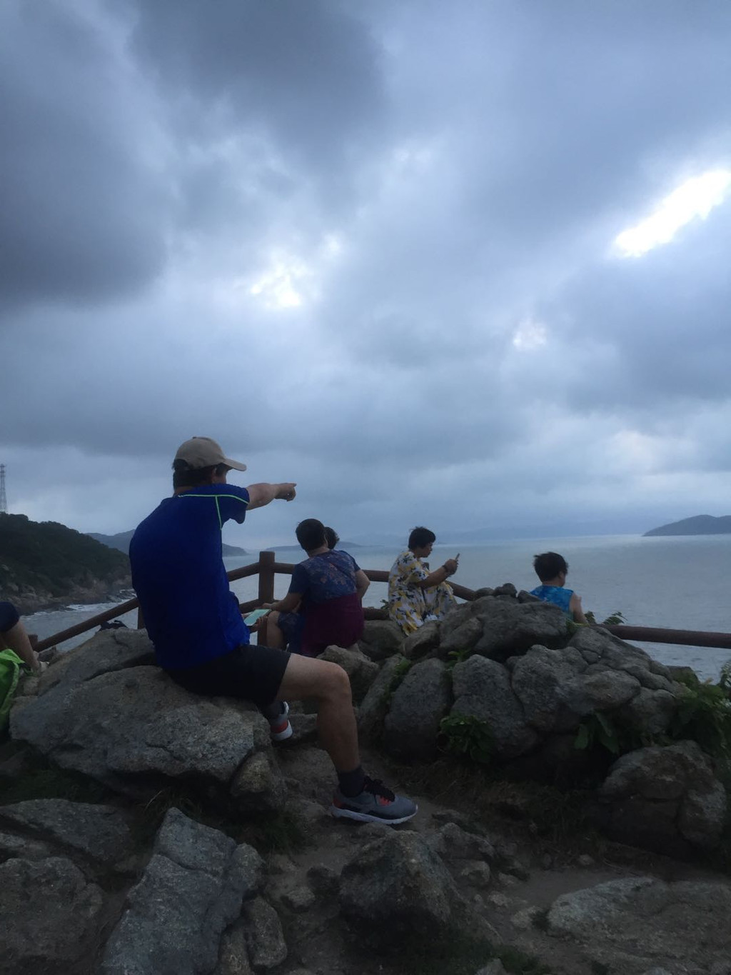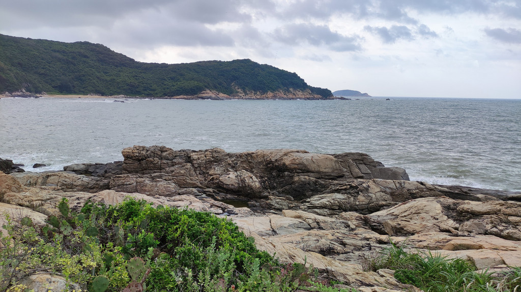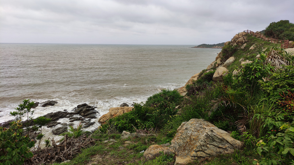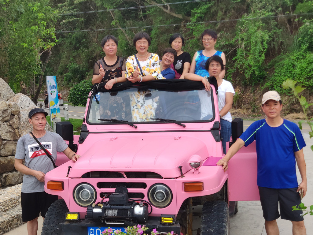 早晨五点准时出发去看日出,据天气预报:黄色暴雨预警,看到日出的可能性不大,但大家依然热情不减,昨天晚上就租好两辆越野车以便今天早晨看日出兼环岛游。下川岛看日出要到米岩或更东边的大湾。环岛游可欣赏下川岛蜿蜒曲折的海岸线,近看惊涛拍岸,远观沧海万里,天地苍茫,辽阔雄浑。岛上的葱绿的植被、恬静的渔村、朴实勤劳的渔民。。。都是美美的风景。我们的游玩路线是:米岩、大湾、川东村、返程到牛塘村、米岩、牛塘湾、牛口公园(越野车150元/3小时)