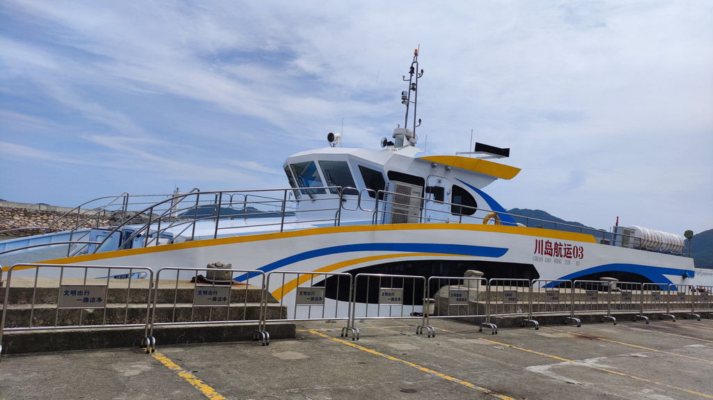 因受新冠病毒疫情的影响,即使是星期天到下川岛的游客也是寥寥无几的,也许是第一班船的缘故吧。