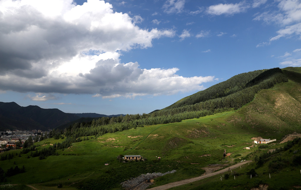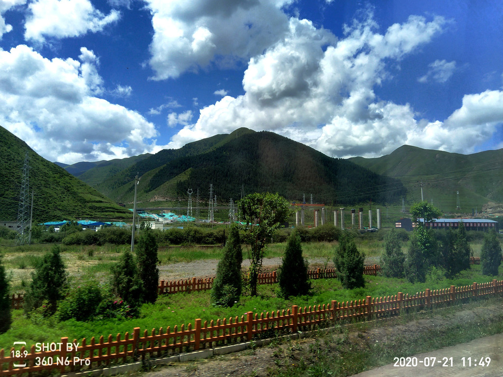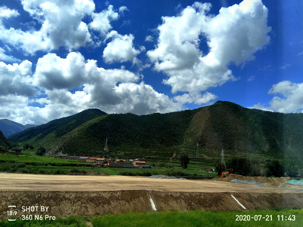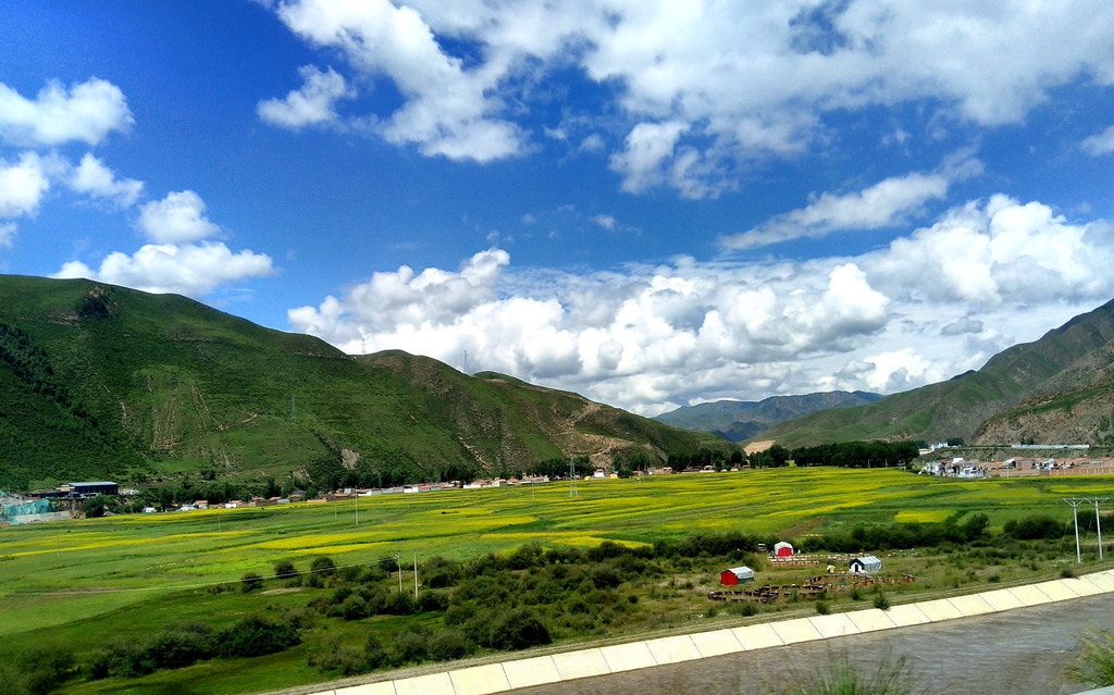 从临夏到夏河高速路沿途蓝天白云下的风景