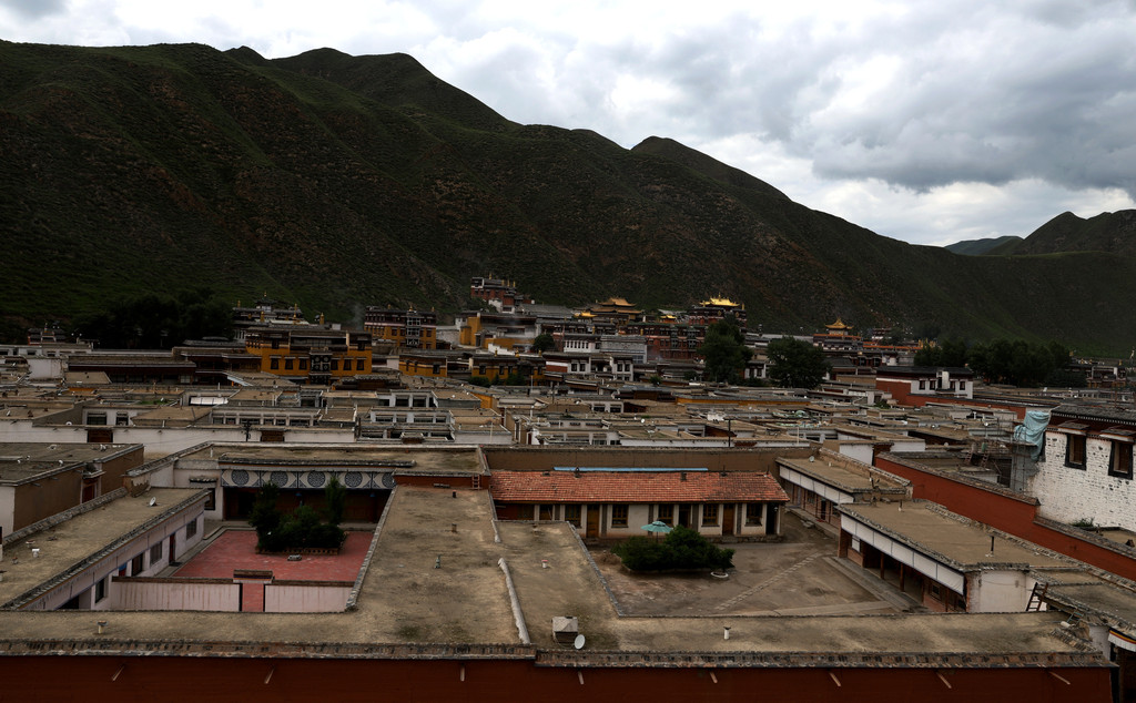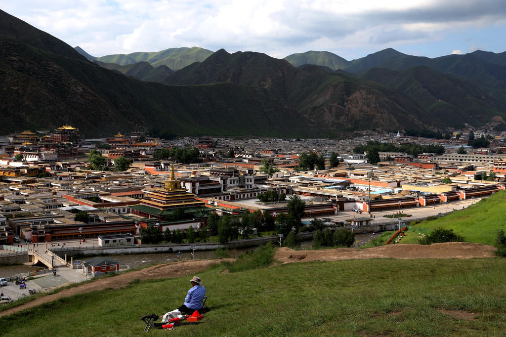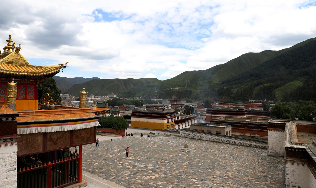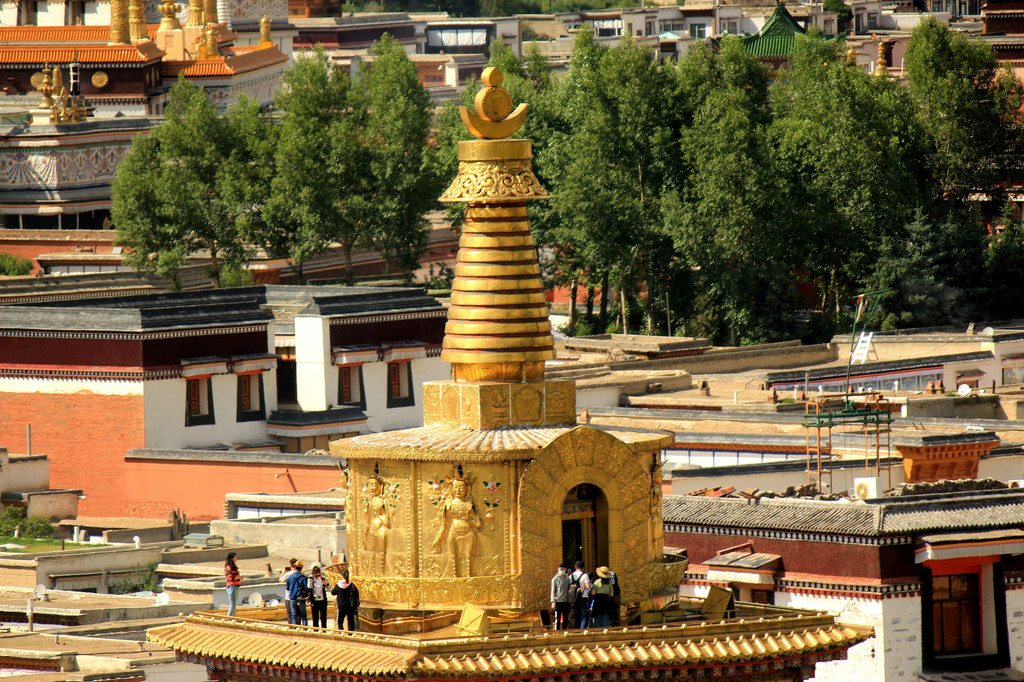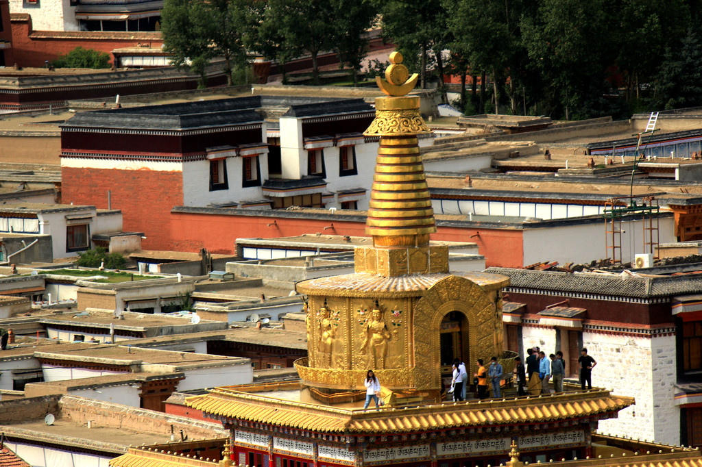 在贡唐宝塔上部的观景平台观看拉卜楞寺
