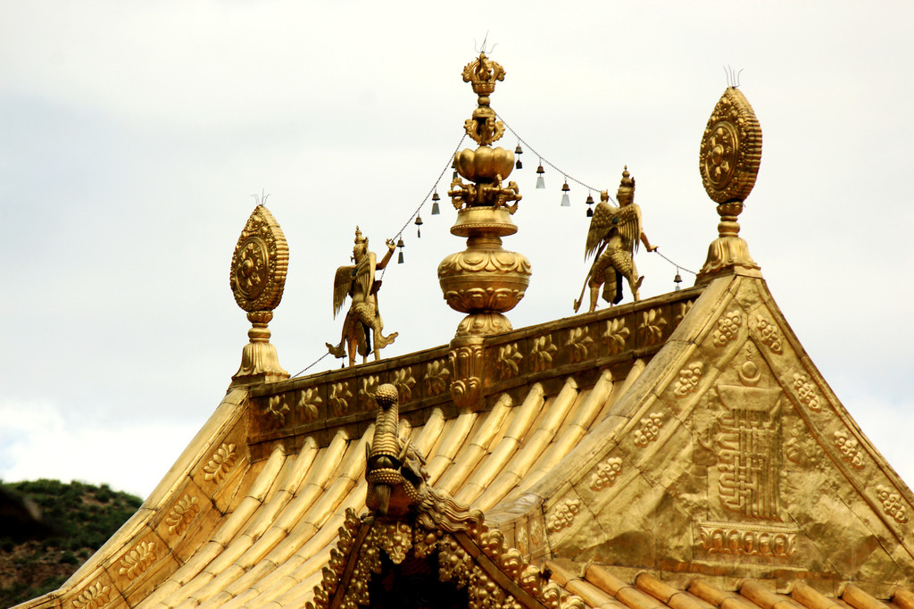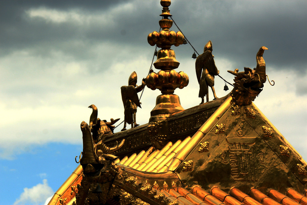 拉卜楞寺有恢宏的建筑群,很多建筑金碧辉煌,寺院内供奉着无数巨大的佛像和精美的雕塑、玉器、字画和法器等,内容十分丰富!只是殿堂内不让拍照,只能一次性的大饱眼福。