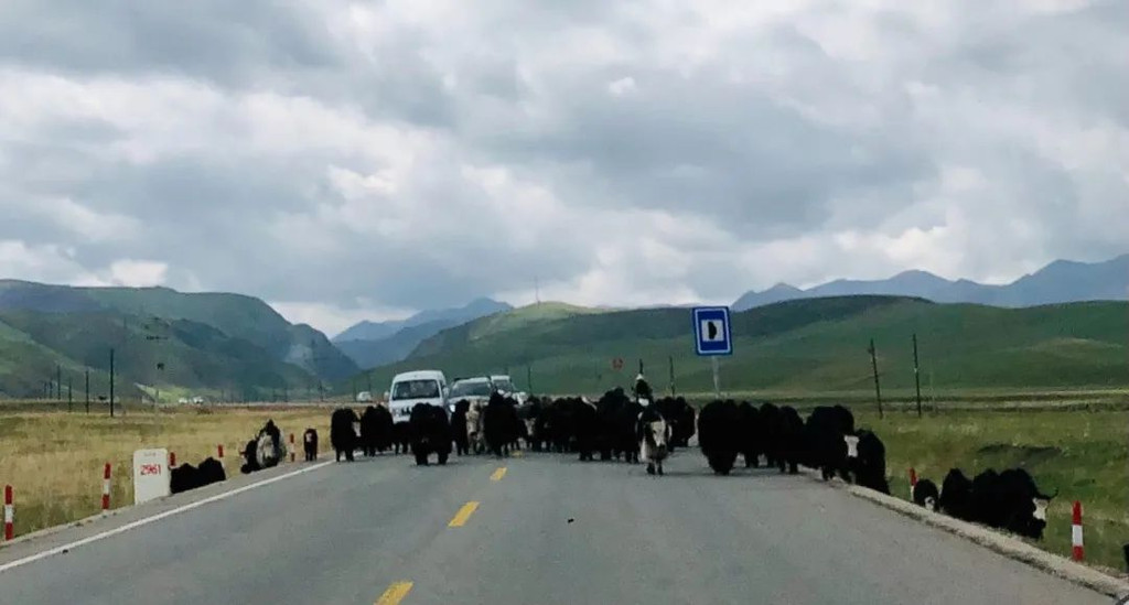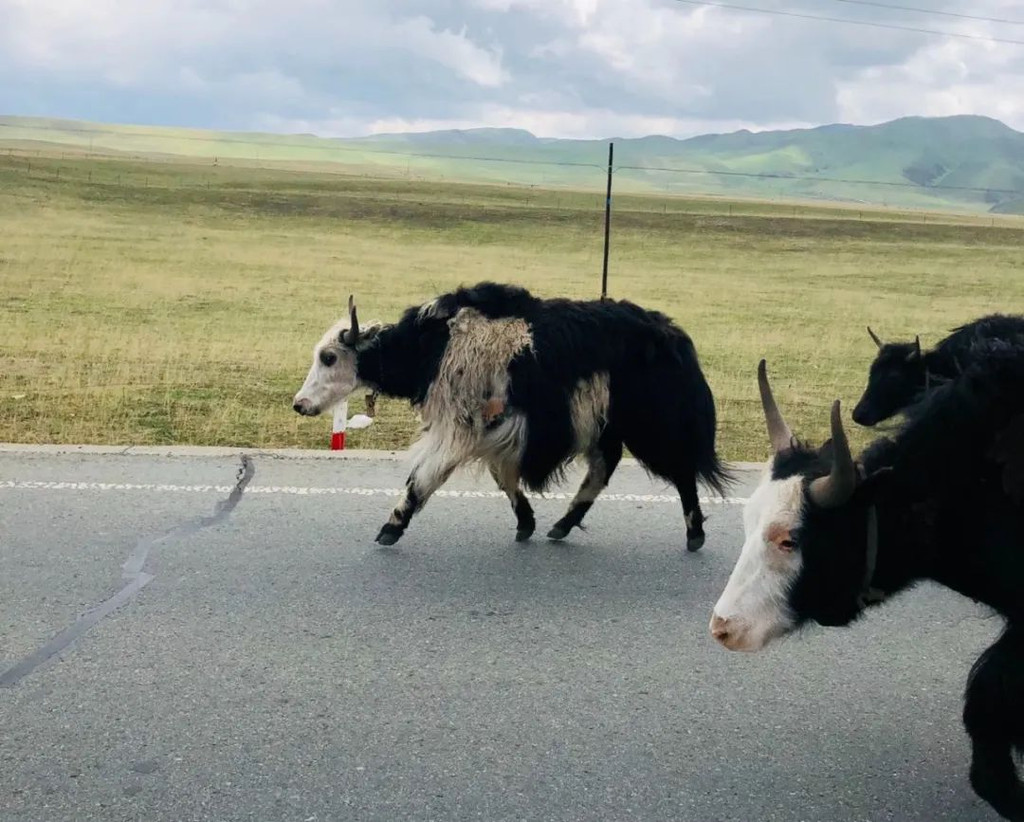 草原上成片成片的牦牛群和羊群,又刷新了我们对放牧的认知。以前以为第一产业农林牧渔,都是辛苦且难赚钱的。但这里动辄几百头牛、几百只羊、开着越野车放牧的情景让我大开眼界,恐怕不少牧民都是身家百万吧~