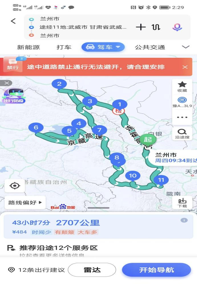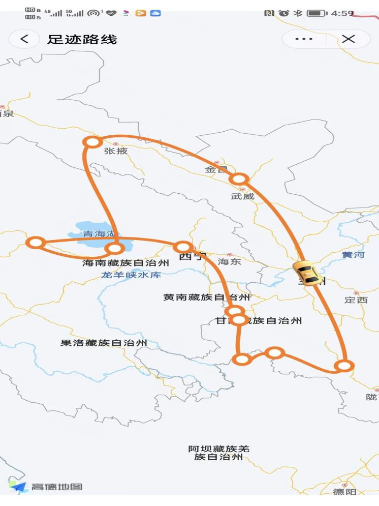 1、官鹅沟-兰州西站:行驶4小时32分钟320.8公里,途经:兰渝线、兰海高速。