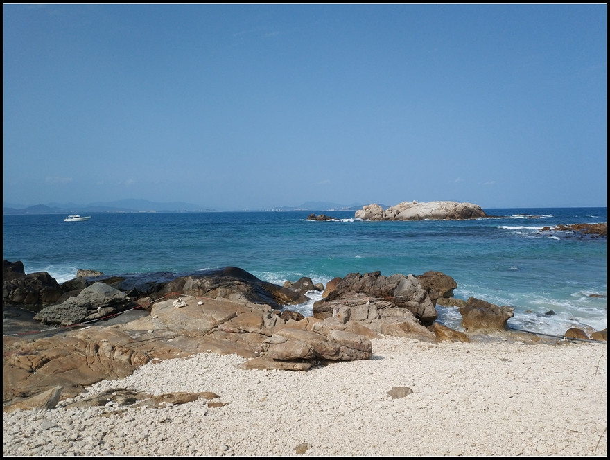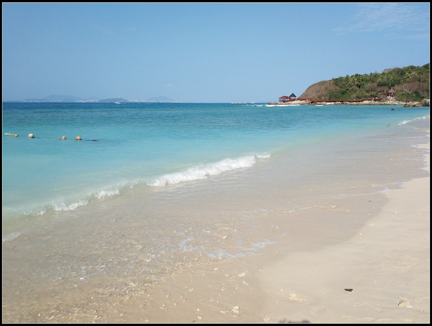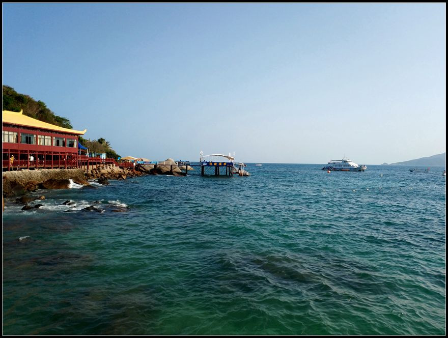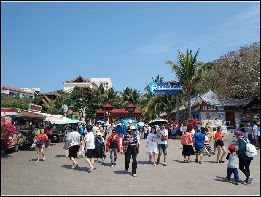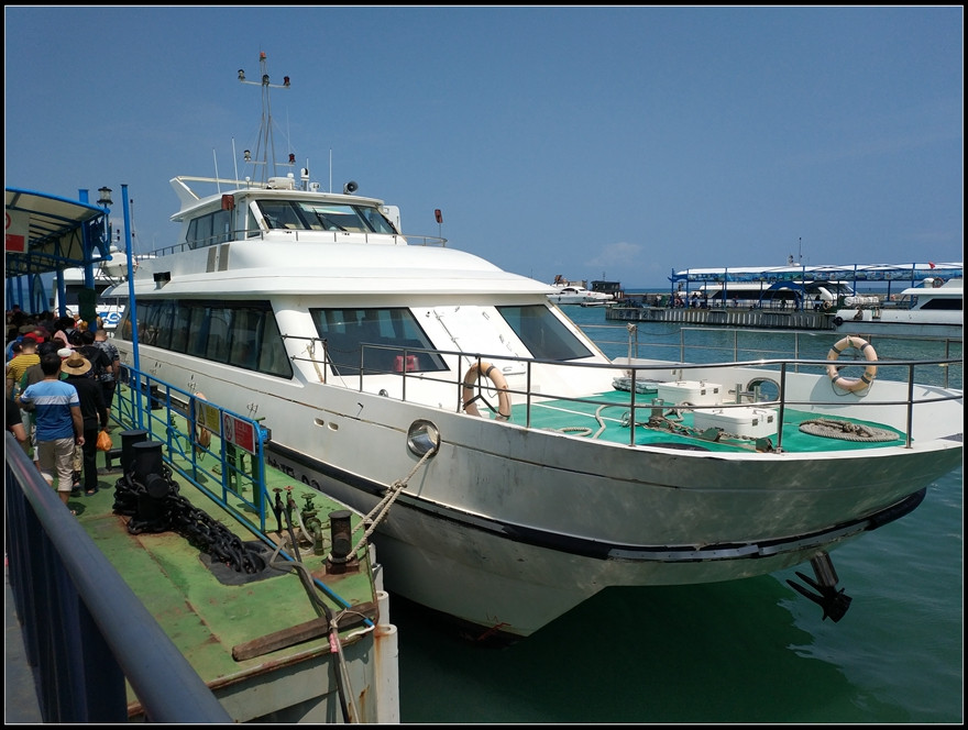 进岛排队,用去了宝贵的一个多小时的时间,进了岛,放眼望去,全是人,没有一个项目是不排队的,潜水20分钟每人680元,贵,环岛游每人80元(两个景点),168元休闲游(5个景点),盘算了一下,如果玩潜水,三个女士恐怕不能下水,只能干陪我们排队,有可能一直排到西边的太阳落山,这样整个下午就报废了,团队游变成了英雄秀,不可以这样,如此一想,最后还是选择了168元/人的环岛游。提前备好的水下拍照手机防水袋潜水套,这次排不上用场了,可惜。