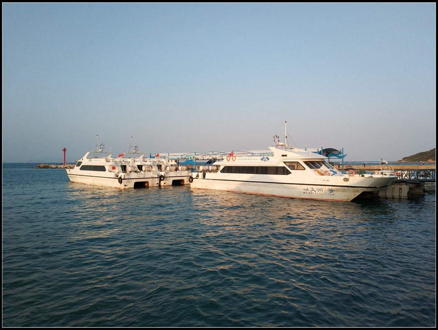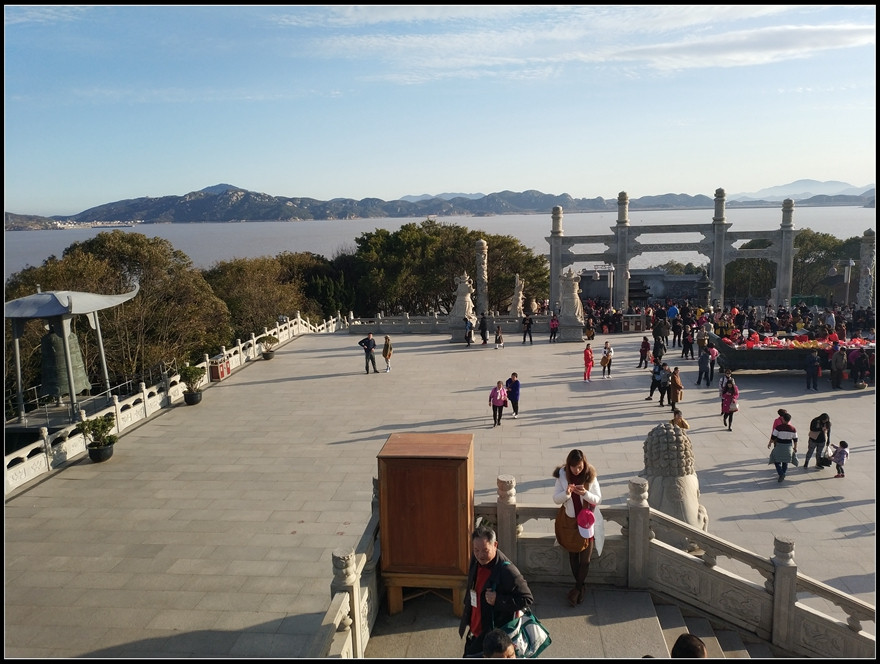 今天是周日。每个周六,普陀山都会迎来人流高峰,所以周五的到达航班机票价格最高,周五晚上宿费也最贵,计划行程时我把去到时间推后了一天,其用意是可以避开人流高峰,还可节省费用,所以,我们乘船进岛的时候,可以看到大量的返程游客正在乘船离岛,为自己的英明小小得意了一下。