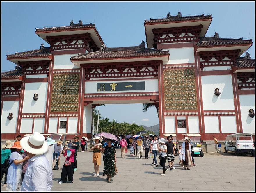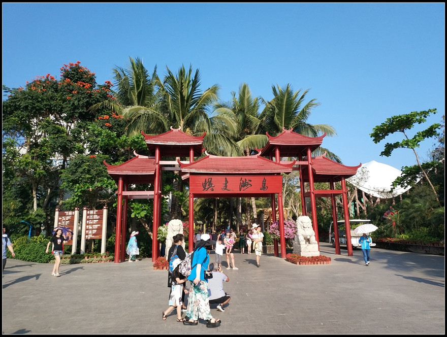不知不觉下午16:40左右,感觉必须要踏上回程了,让服务人员叫来一辆电瓶车,穿过珊瑚酒店大门口,从蜈支洲岛标志牌楼走出来,来到码头。