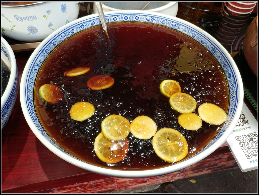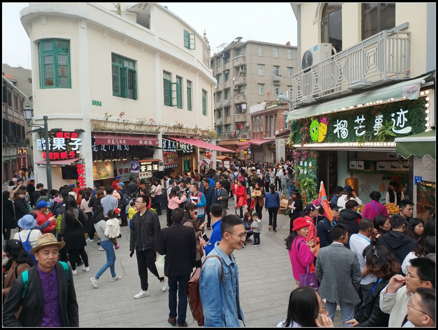 中午12:30导游把我们带到龙头路商业一条街,布满了各种小吃店和海鲜饭馆,漫步在街头,我突然记起厦门有名的小吃“花生汤”,恰好这时有一块“烧仙草花生汤”的招牌映入眼帘,在我强烈建议之下,一行六人走进去,瞬间就把小小的店面挤满了。一人一份花生汤,外加刚出炉的法式泡芙,为鼓浪屿的风土人情做了最好的注释。