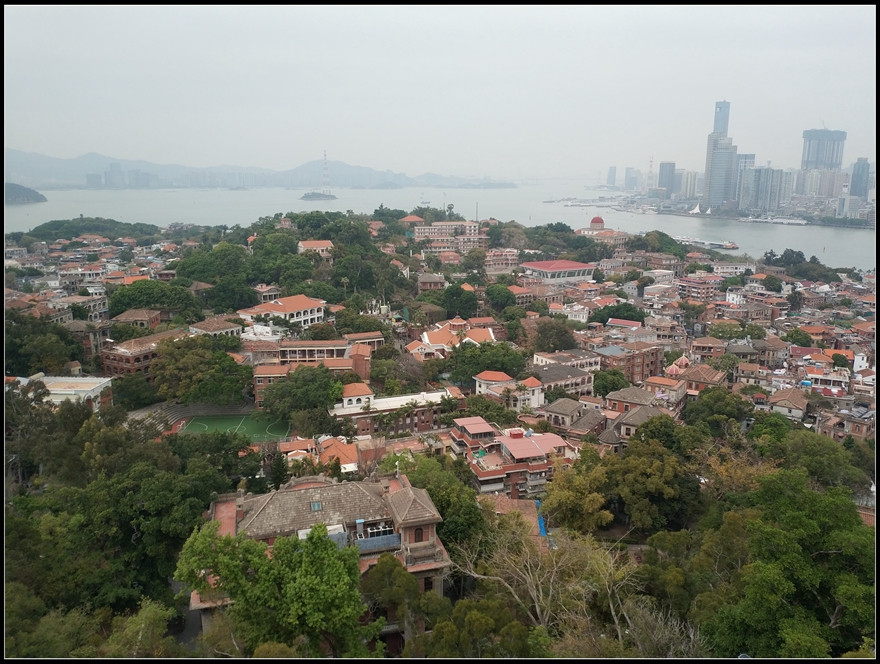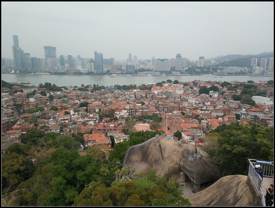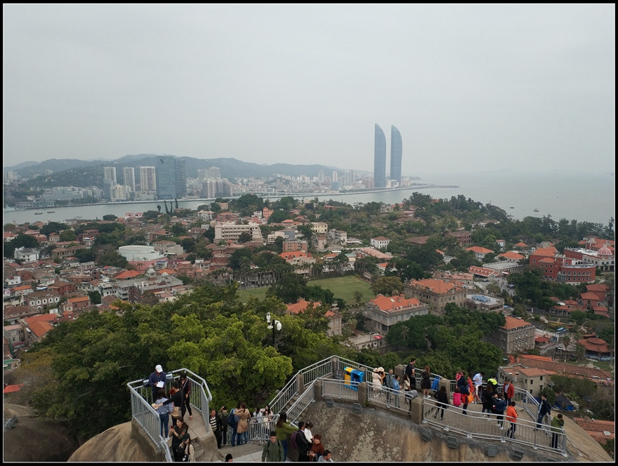 日光岩海拔92.7米,沿崎岖仅能容一人通过的石阶小路上行,一直登到最高处,忽然豁然开朗,鼓浪屿美景和厦门岛全貌一览无余。