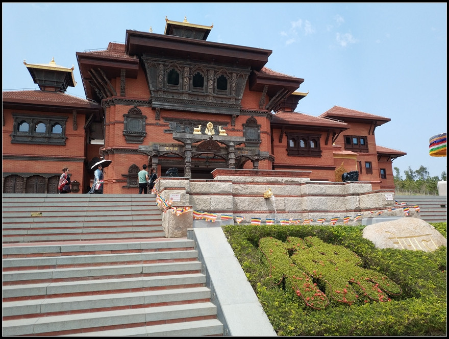 掩映在南山寺路树丛中的尼泊尔佛陀馆,全名为“天竺圣迹佛陀馆”,前身为上海世博会尼泊尔国家馆,2012年2月整体迁建南山寺,该馆面积7500多平方米,是在原有世博馆的基础上进行二次设计创新,整体规模为原馆的两倍。