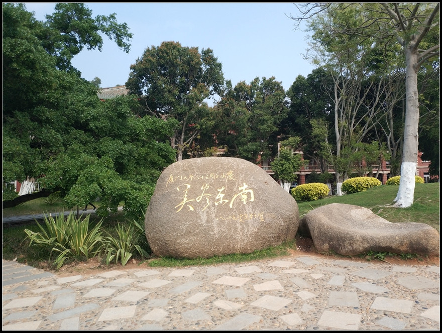 厦门大学周一到周五对外来参观的游客,既限制时间又限制人数,而且只有西门和大南门(不是南大门)可以入内。我们去到西门的时候进入人数已经超限了,校门口聚集了不少想入内游览的游客被保安拦在门外,幸亏我提前做了准备,打电话给一个老乡同学,约定在南普陀寺对面的大南校门见面。