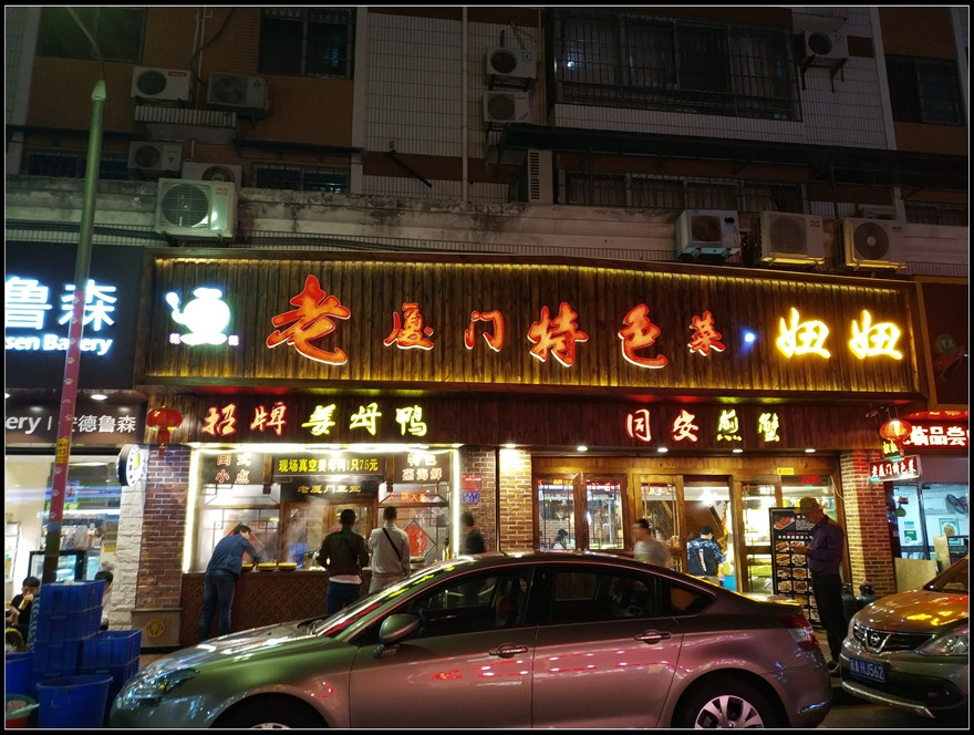 游厦门特色,吃也要有当地特色,这才是真正的旅游。原打算在曾厝垵吃晚餐,但曾厝垵实在太热闹了,适合一边走一边吃,不太适合坐下来慢慢吃,就搜了一下厦大附近可以步行走回住处的美食,搜到一个叫做“老厦门特色菜妞妞”的餐馆。手机是个好东西。