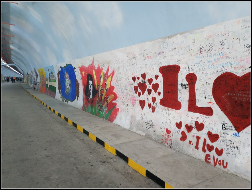 芙蓉隧道是游览厦大必去的景点。隧道直接通往厦大学生公寓,约有一公里多长,步行需要走20分钟左右,隧道的两边都是厦大学生的涂鸦杰作,展现了厦大学生丰富的才华和想象力。