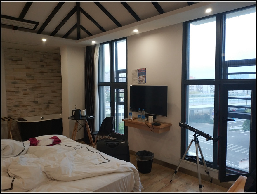 前台小妹给升级了房间,在房间里可以微微远眺大海,房间里还配备了望远镜,但感觉这次升级有些水分,因为在远眺大海的同时,也会听到来自成功大道行车的噪音。毕竟升级了,不好再说什么。在热情洋溢的服务员强烈要求之下当面打开手机订单打了五星好评。从此一直到离开再没见到她殷勤的笑脸和提箱保安的身影。