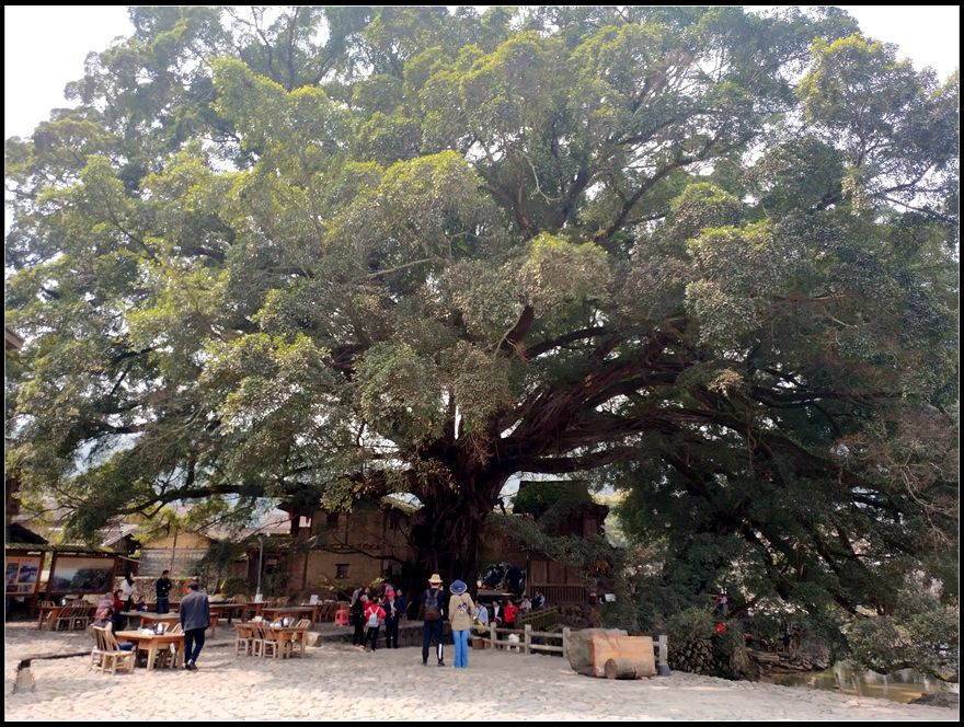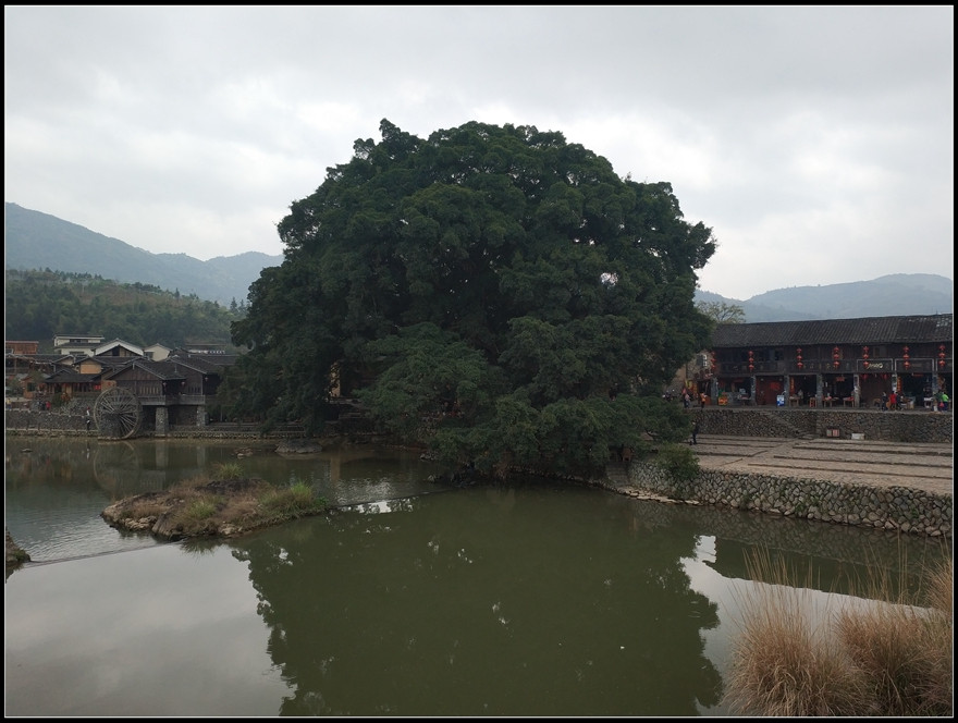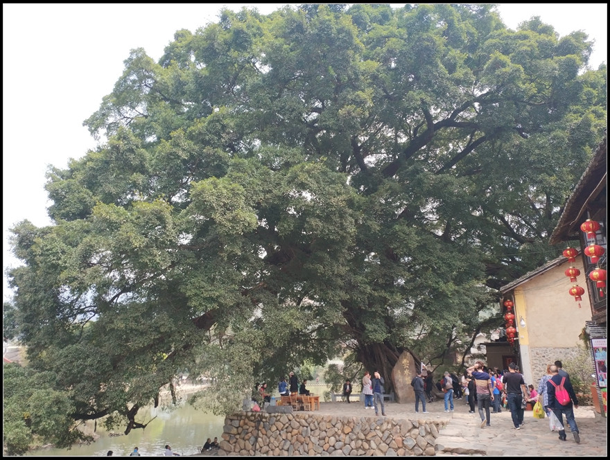 云水谣古镇,是历史悠久的古老村落,村中幽长古道、百年老榕、神奇土楼,还有那灵山碧水,无不给人以超然的感觉,溪岸边,由13棵百年、千年老榕组成的榕树群蔚为壮观,其中最大一棵老榕树树冠覆盖面积两千多平方米,树干底端要10多个大人才能合抱,是整个福建省已发现的最大的榕树。榕树下一条被踩磨得非常光滑的鹅卵石古道伸向远方,据考证是长汀府(龙岩市)通往漳州府(漳州市)的必经之路。古道旁,有一排两层老式砖木结构房屋,这是长教已有数百年历史的老街市,老商铺大多还保留着木板代墙的建筑结构。