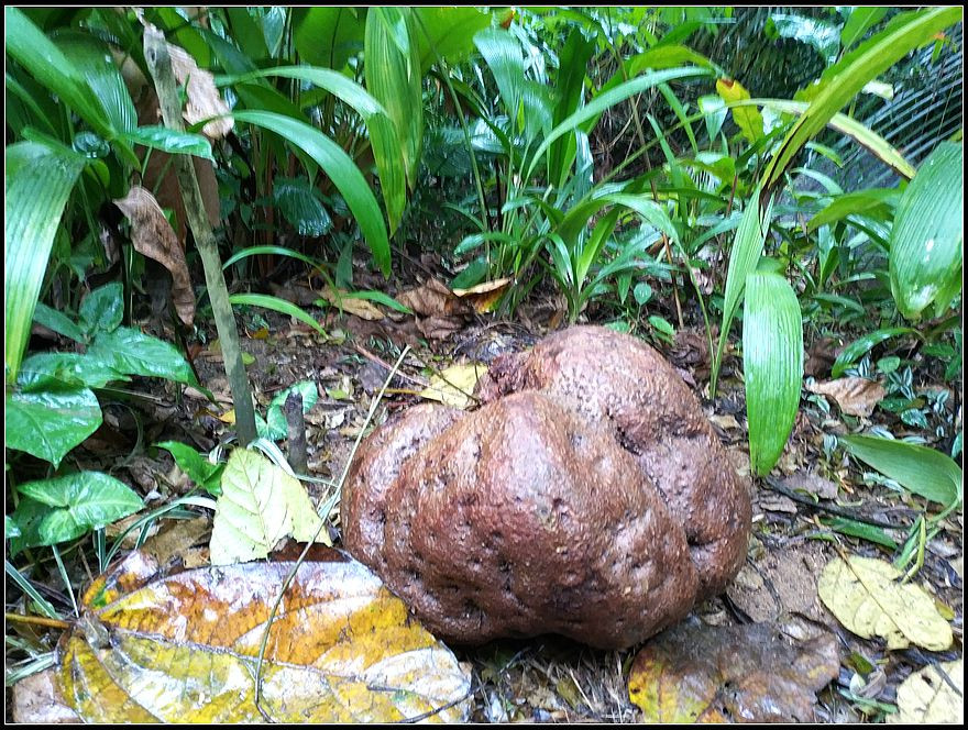 冒着细雨,我们在导游引领下逐一参观和欣赏各种植物形态,其中自然生长的三七形状巨大怪异,直径有数三四十厘米,很像一块其貌不扬的大石头。还有一种金黄色的“金镶玉”竹子也给我留下深刻印象。