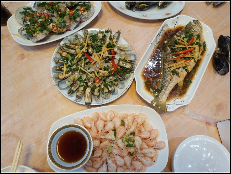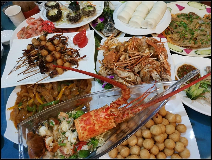 晚餐非常丰富,本来我们是六个人,按照八个人标准上的海鲜,连龙虾都上了,旅行社在第一天发生那么多失误之后,终于用心对待客户了,可惜旅程已经过半,要是开始一直这样该有多好。搞好服务并不一定需要多花费用,绝大多数只要用心就能做好。