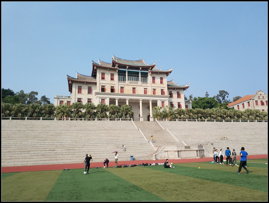 然后来到建南大礼堂和上弦场,有一些学生正在绿地上上体育课,我们也加入进去,用他们闲置的橄榄球玩了一会儿,柔软的草地,清新的空气,亲身感受了一次大学生活,微微弥补了年轻时的遗憾,很惬意的感觉。