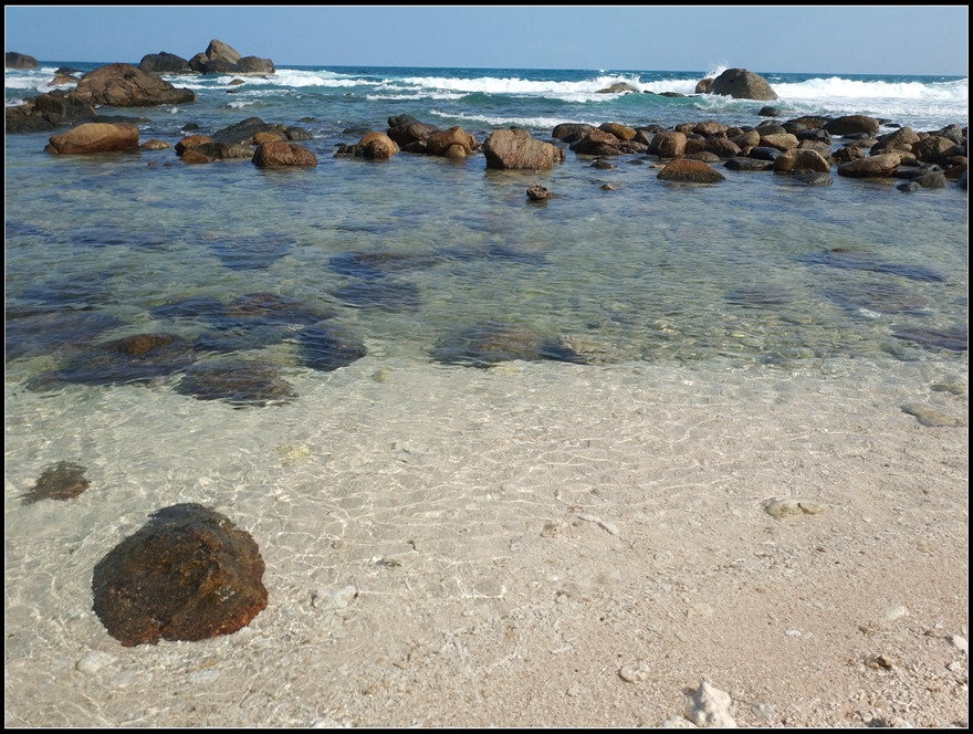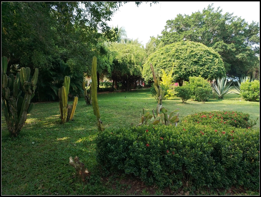太阳仍然没有升起来,天空开始淅淅沥沥的落雨,打在沙滩上,留下一个个圆圆的坑,打在椰叶上,发出悉悉索索的声音。我疾步走回居住的宾馆餐厅。吃过早餐,天空仍然阴霾不清,没带雨伞,我只好回到房间,看看离出发参观还有些时间,沏上一杯免费供应的咖啡,来到阳台上坐下来小憩。