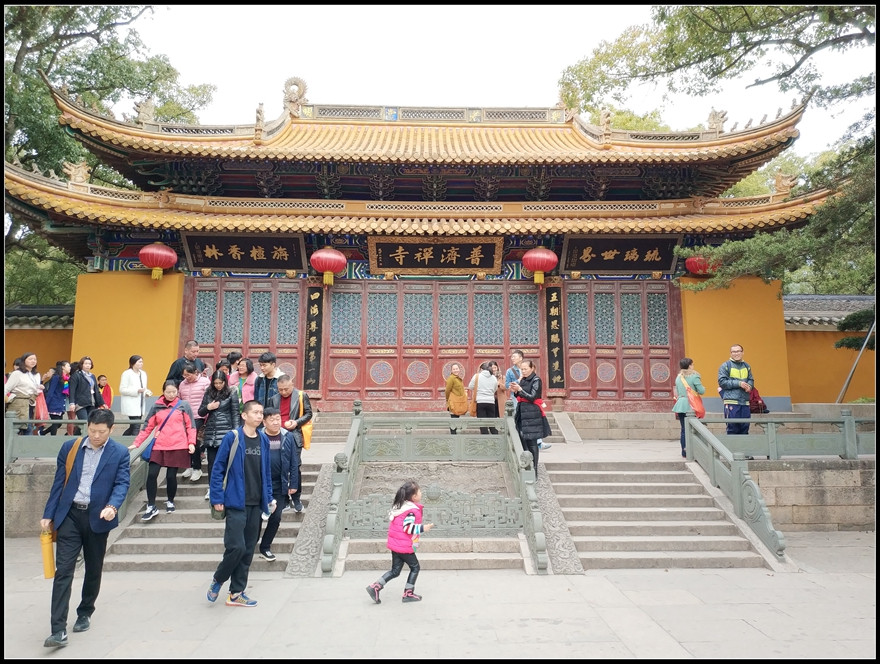 普济寺大门口聚集了不少业余导游,承诺以几十元的收费带领游客参观。其实如果提前做好功课,可以查到普济寺拜佛顺序的攻略:买票后先不检票,去拜门口的弥勒菩萨,保佑开心的,因为正门关着的原因,是看不到的。检票进门,拜圆通宝殿,不求心愿,只报家门姓名,让菩萨知道你来了。然后绕圆通宝殿顺时针一圈,分别是保佑事业有成的普贤菩萨;保佑家里长辈身体健康的地藏菩萨;保佑全家消灾免难的三世佛;有求必应的千手观音;保佑孩子学业有成的文殊菩萨;保佑财运的珈蓝菩萨,最后到韦陀菩萨那边报下车牌号,保佑出入平安。这样可以不走回头路,拜完就回到门口了。