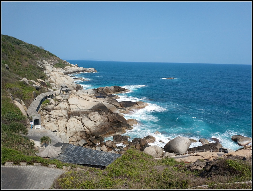 环岛游完全是乘坐电瓶车沿海边小路行驶,说实话服务还是相当不错的,电瓶车全部是女司机,一边开车一边讲解,车在崎岖小路上飞奔,讲解也随景点转换娓娓道来。