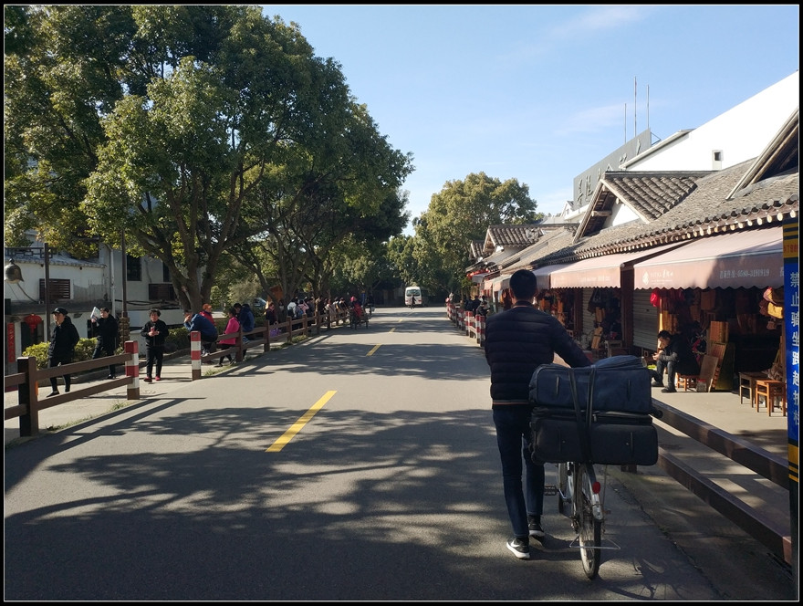 为环保考虑,除了公交车和一些星级酒店的接站班车,普陀山景区不允许任何私家汽车和电动车通行,老板骑自行车很快把行李送来,简短告别,我们登上返程的渡轮。