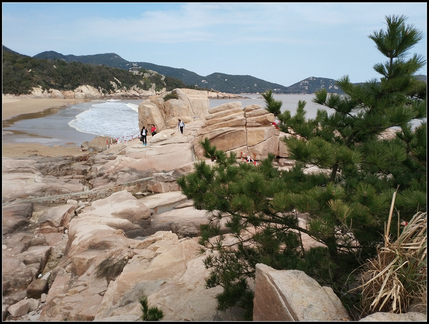 转去观音跳,下到海边一览,然后步行至普济寺,又从普济寺附近的小路登山上行,已经接近傍晚时分,气温骤降,风大寒冷,再往前走恐有感冒之恙,遂步行回到住处。