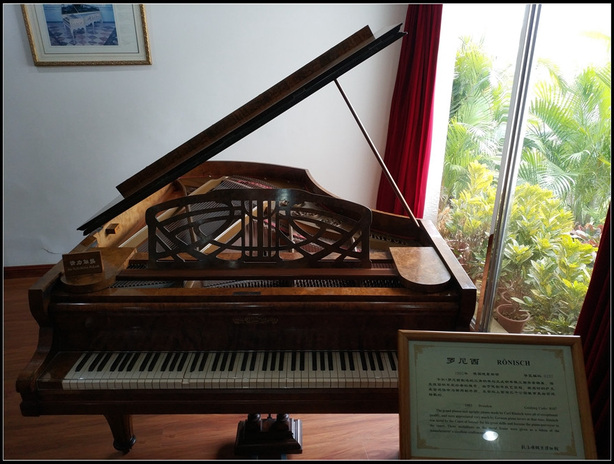 钢琴博物馆位于菽庄花园的“听涛轩”,占地450平方米,分两个管楼展出由鼓浪屿旅澳收藏家胡友义先生毕生收藏的40多架世界名古钢琴,有十九世纪上半叶美国制造的“士坦威”,奥地利的“博森多福”,德国皇家钢琴,镏金钢琴,世界最早的四角钢琴,最大的立式钢琴,最老的手摇钢琴,脚踏自动演奏钢琴,八个踏脚四套琴弦钢琴,等等,解说员一边解说一边演奏展示,让游客在见识一百多年来世界钢琴的制作技术和发展水平的同时,可以亲耳聆听和感受古老钢琴的魅力。