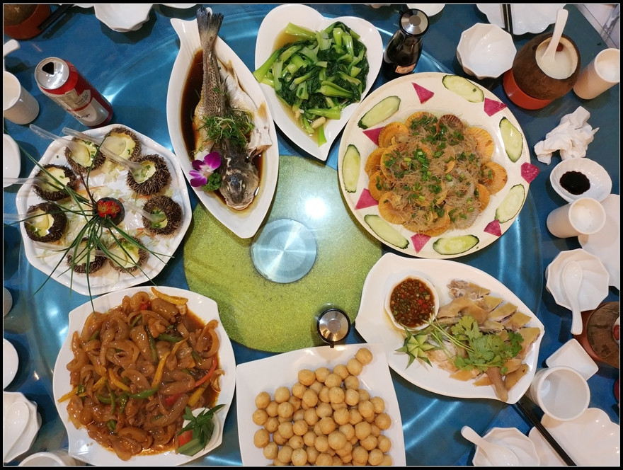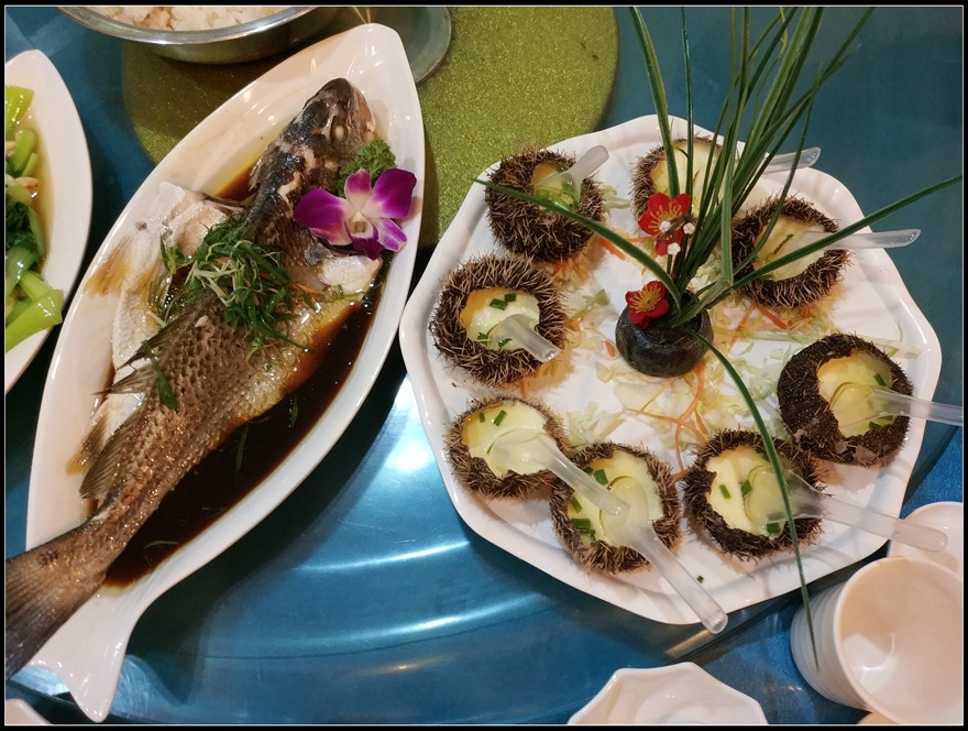 晚餐是这次海南游的一大亮点:海鲜大餐。由于从景区退出的时间较早,我们到达市区酒楼的时候,还有空余时间,就在酒楼附近溜达了一会儿,自己找商店购买纪念物品和食品。