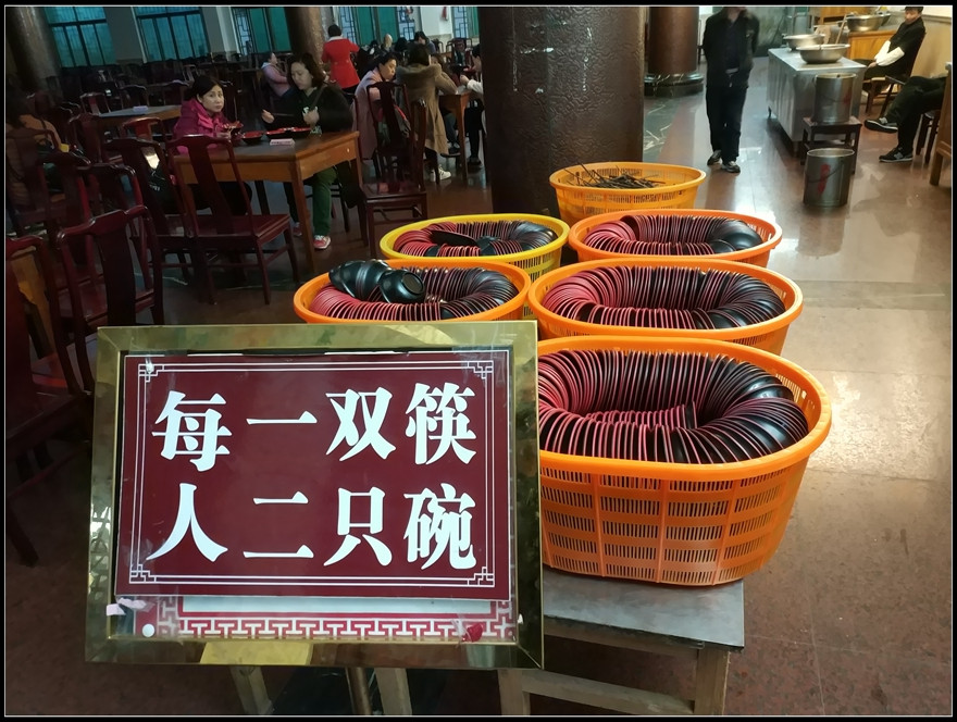 大多数游客吃素斋,除了虔诚,还可能是因为新鲜和好奇,再加上价格便宜,大厅里顿时人满为患。吃过斋饭,照例到室外洗净碗筷摆放好,然后离开餐厅。