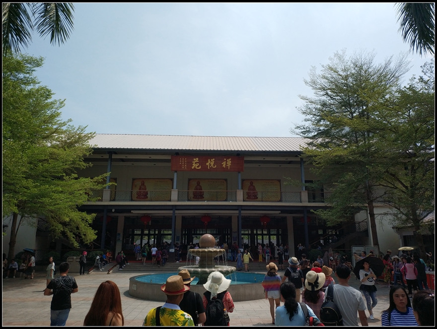 下午的阳光泼洒在偌大的广场上,正中耸立的南海观音显得祥瑞善慈,天气正好,心更虔诚,礼拜之后,我们又进入到殿内环绕一圈诚心膜拜。