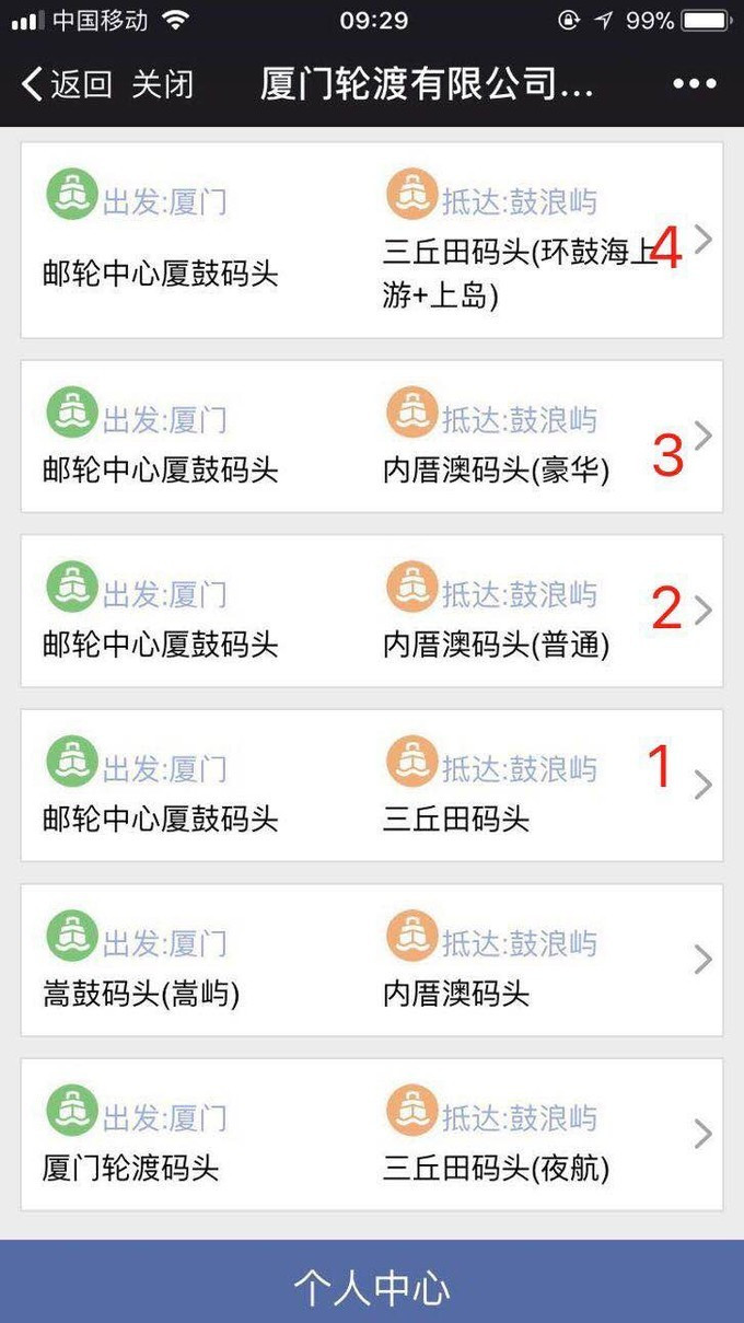 《购买 鼓浪屿 船票》,微信公众号购买船票