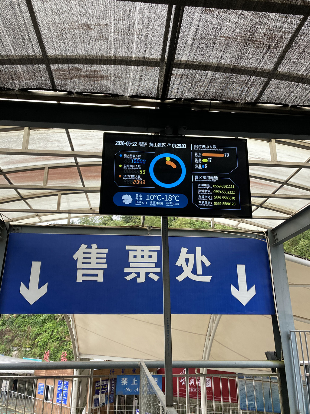 景区门口的提示牌,可以清晰的显示景区天气,客流等实时数据