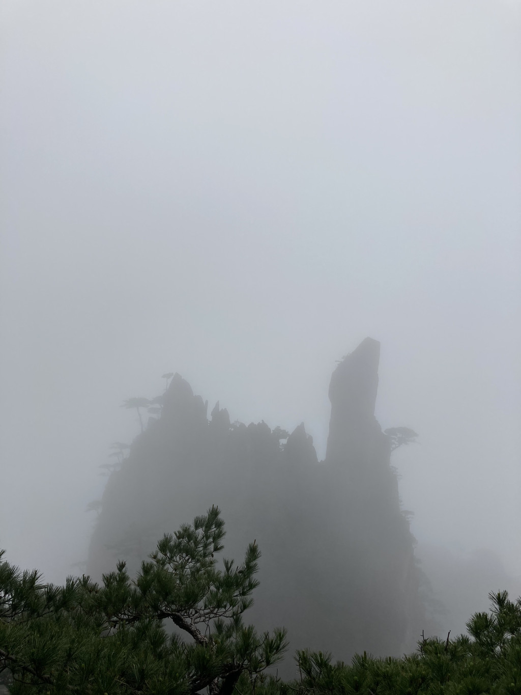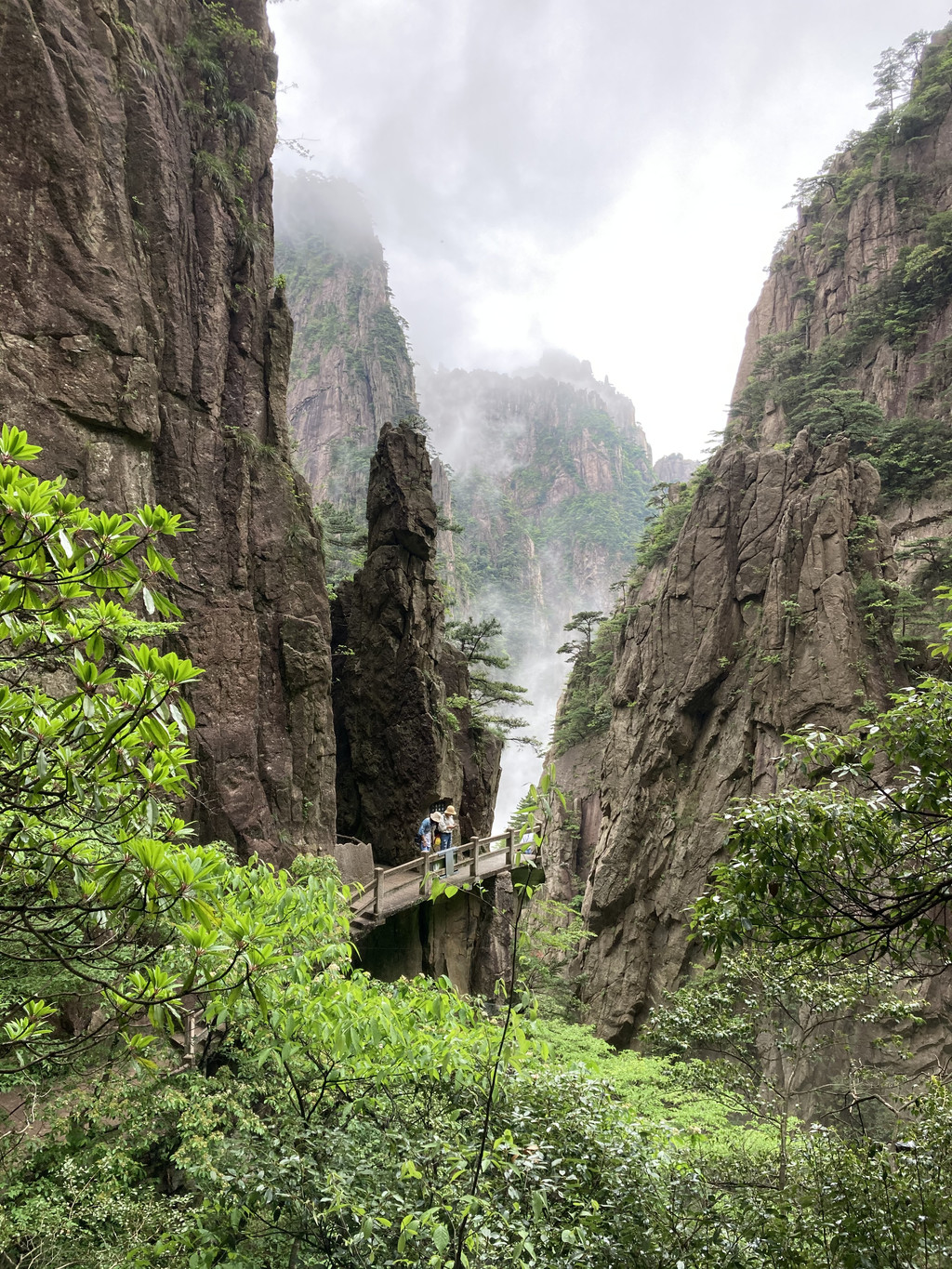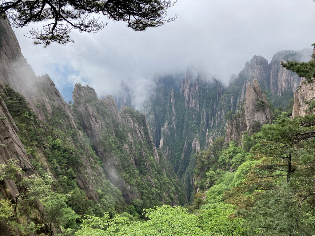 酒店出发(7:15)----换乘中心(7:30)----(必须乘坐景区摆渡车进山)---云谷寺(8:05)---(索道)---白鹅新站(8:30)---始信峰(8:45)---- 竖琴松(8:55)---黑虎松(9:15)----北海宾馆----大王松(9:35)---西海饭店---排云亭(9:50)----(一环)---(二环)----西海大峡谷谷底排云溪站(11:45)---(地轨火车)----天海站(12:05)----吃午饭休息40分钟(到12:50)----光明顶(13:10)--光明顶欣赏风景50分钟(到14:00)----群峰顶(14:10)----飞来石(14:45)----原路返回光明顶(15:20)----海心亭(15:35)----百步云梯(16:15)----迎客松(17:00)----玉屏索道(17:20)---慈光阁(17:30)-----酒店(等摆渡车约30分钟,18:40),全程约11个小时,每人门票、索道、摆渡车费用498元,为了多走些景点,全程路上三次索道都坐了,价格有点小贵。