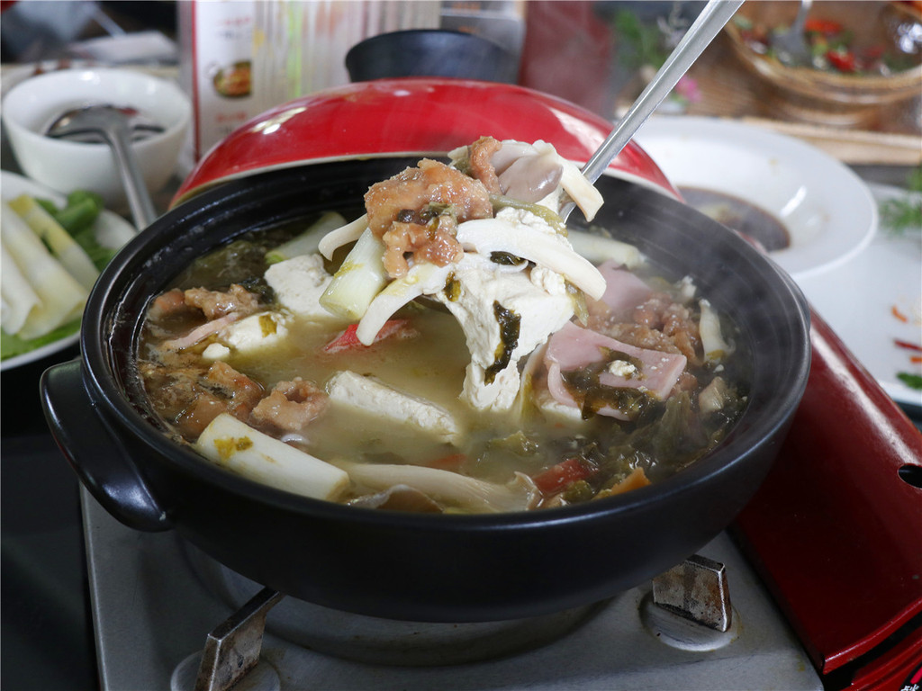 地道的才是美味的,忠于乡土,挖掘原始的味道,把古味呈现在餐桌,泸州荤豆花,自制的卤水豆腐,加上五花肉,酸菜、火腿、西红柿等,一锅豆香满满,香糯醇和的汤水十分和胃。