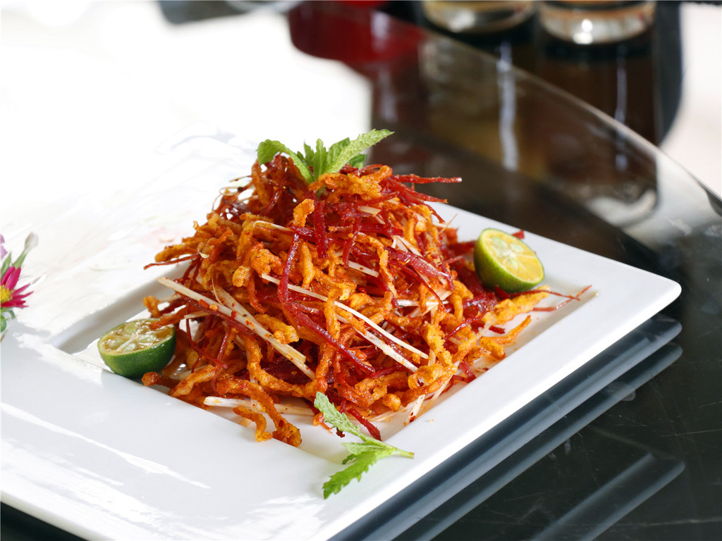 虫草花和牛肉丝都是四川常见的食材,而这次香辣会把这两者巧妙结合在一起,虫草花拌牛肉丝干香脆爽,慢嚼细咽很巴适。